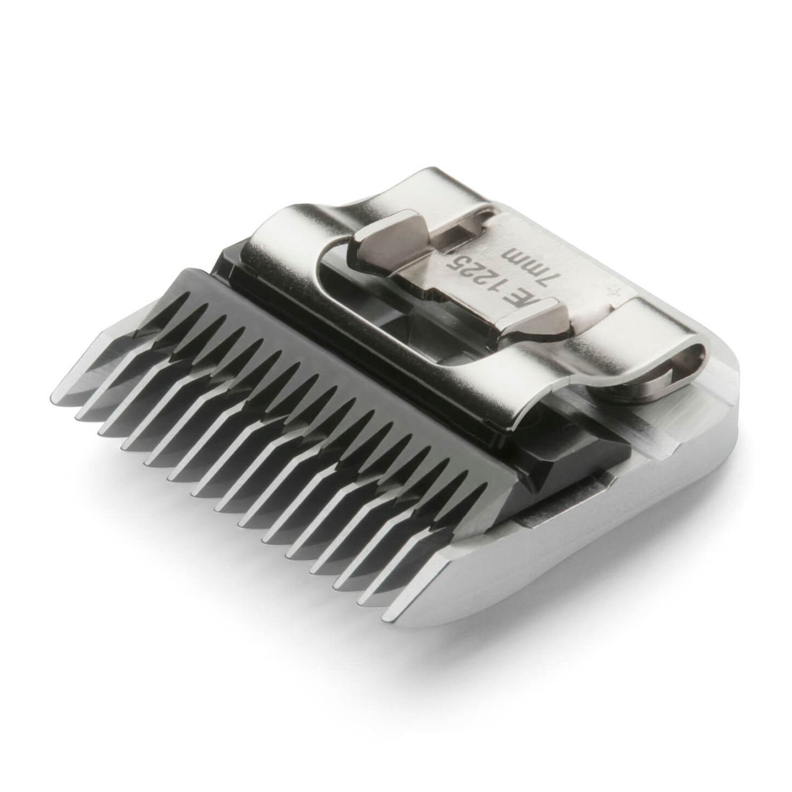 The original WAHL Snap-On Clipper head from WAHL is a precision ground full metal cutting set. The cutting set is "Made in Germany" and suitable for professional use as well as for the home user. The shearing head is made of high quality stainless steel by cross grinding and not punched. This manufacturing method gives the shearing head an extremely long service life. The grooved profile on the back ensures optimal cooling of the cutting set. The special shaving head geometry and the optimally adjusted cutting pressure ensure an exact cut. Thanks to the high quality of workmanship, the cutting set can be reground several times.
