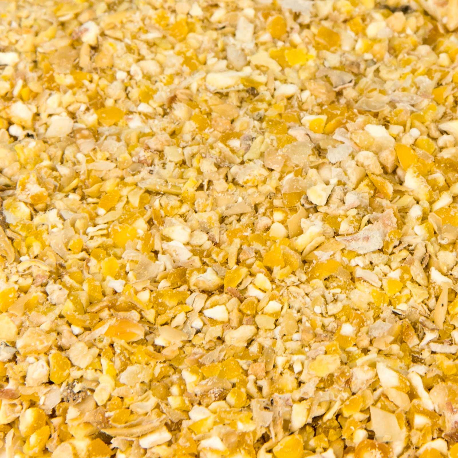 Majsgryn, extraktionsmjöl av soja (bönor) med såpstock (ånguppvärmd), solrosolja, musselgryn, monokalciumfosfat, kalciumkarbonat, natriumklorid