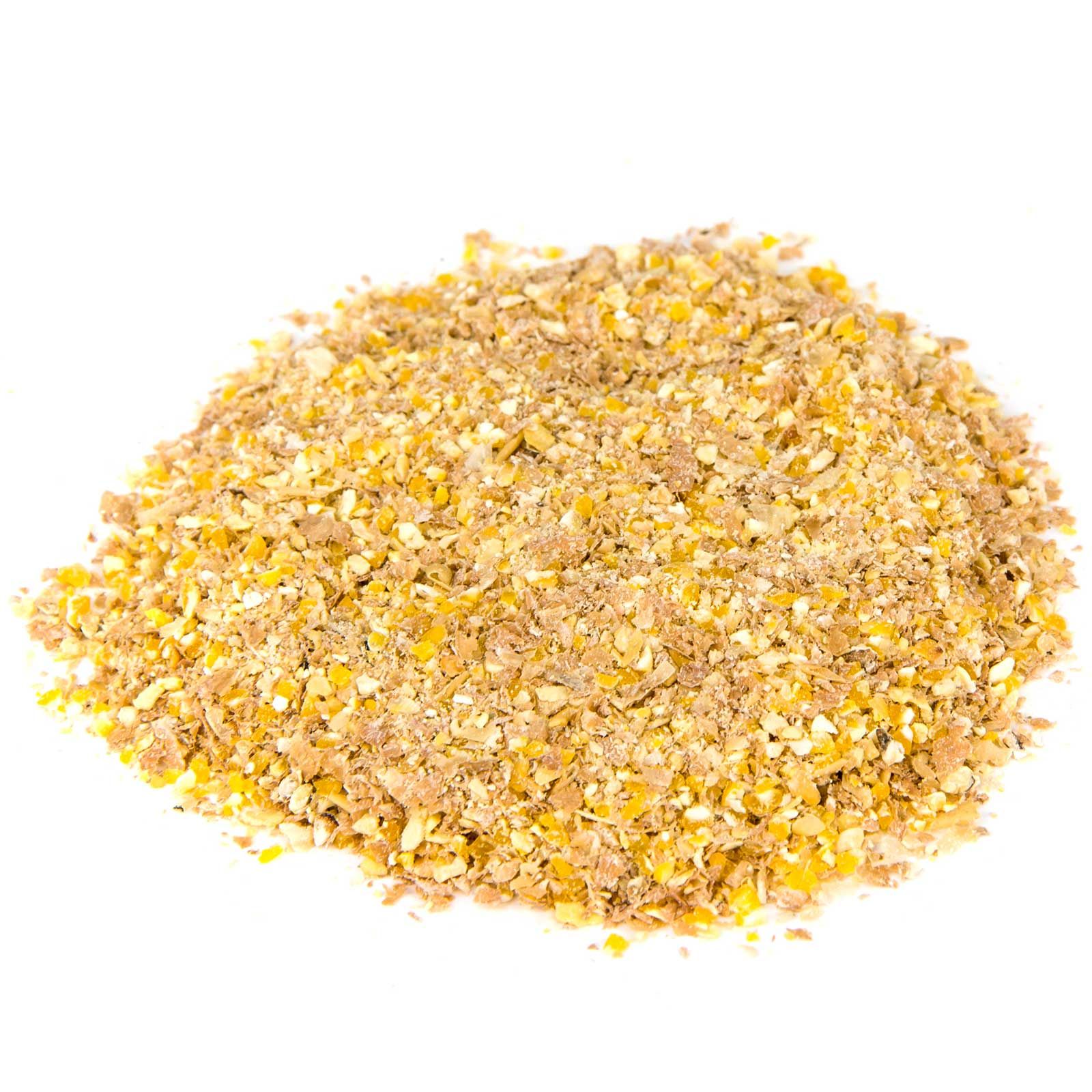 Majsgryn, sojaextrakt (bönor) med såpstock (ånguppvärmd), grovt vetekli, kalciumkarbonat, monokalciumfosfat, solrosolja, natriumklorid