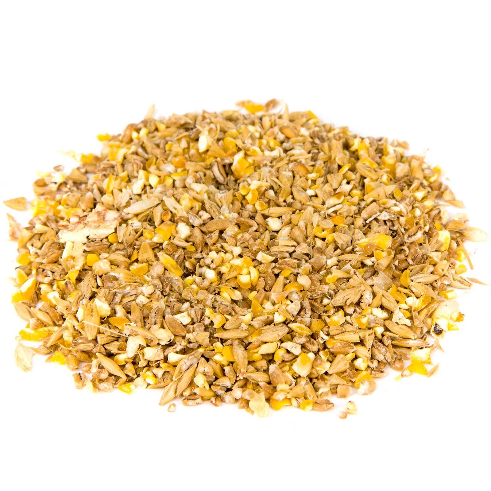 Korn grovt, vete grovt, majs grovt, musselgrus, kalciumkarbonat, solrosolja, monokalciumfosfat, natriumklorid