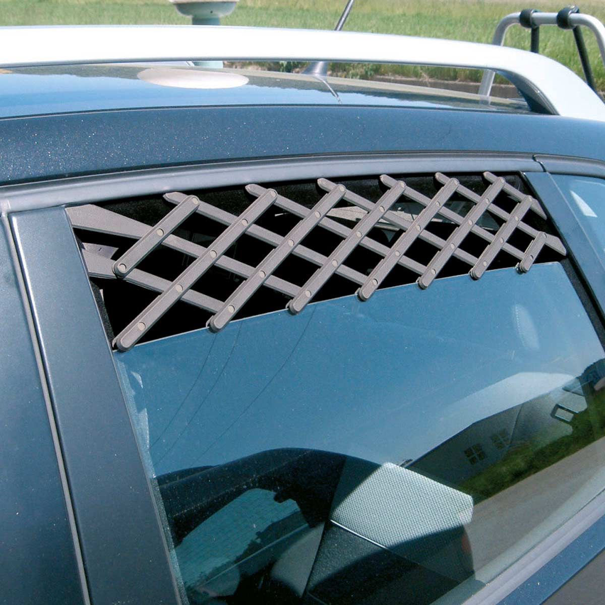 Hundgallret av robust plast passar alla fönsterbredder. Hundvakten ser till att det finns tillräckligt med frisk luft i kupén även när bilen är stängd, ifall din fyrbente vän skulle behöva vänta på dig ensam i bilen en mycket kort stund.
