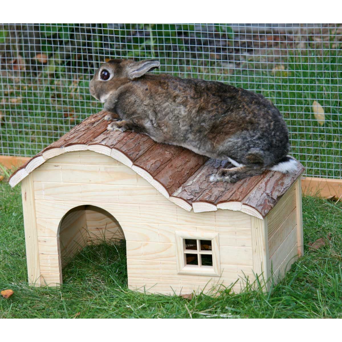 Gnagarhuset är ett välkommet skydd för alla smådjur som dvärgkaniner eller marsvin. Träet som används är helt naturligt och obehandlat, så det går att gnaga utan att tveka.