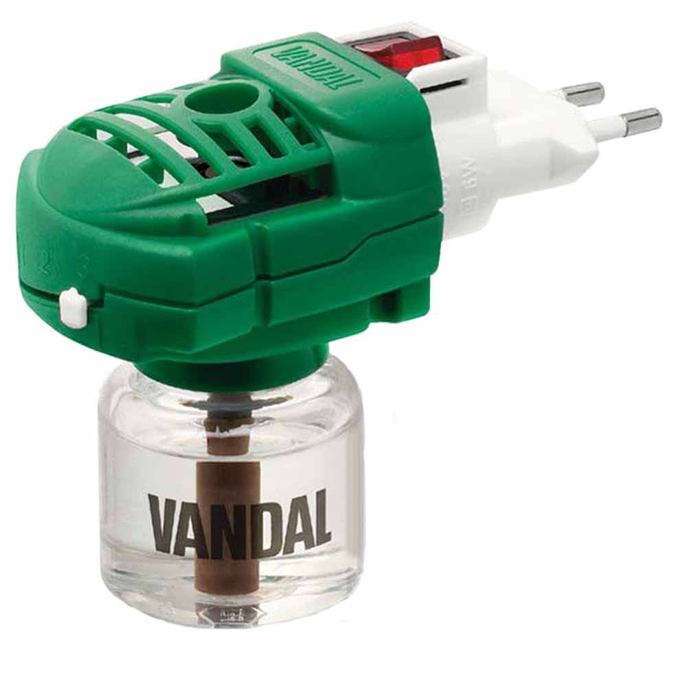 Kombinationen VANDAL gelplugg/myggplugg är justerbar och ger ett pålitligt skydd mot myggor. Myggproppen doserar frisättningen av aktiv substans när flytande aktiv substans används i enlighet med rummets storlek. VANDAL myggproppen ger tillförlitligt upp till 55 myggfria nätter.