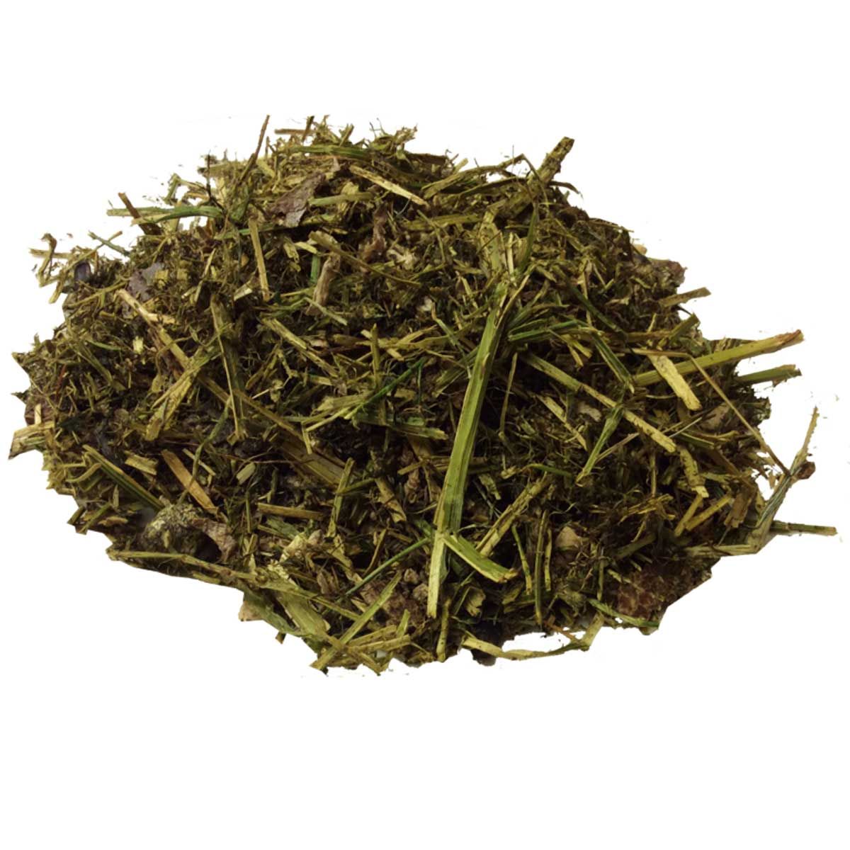 Lucernehö, grönt mjöl, torkat, risfodermjöl, torkad sockerbetsmassa, melass, linfrökakaka, solrosfrön, kallpressad linfröolja.