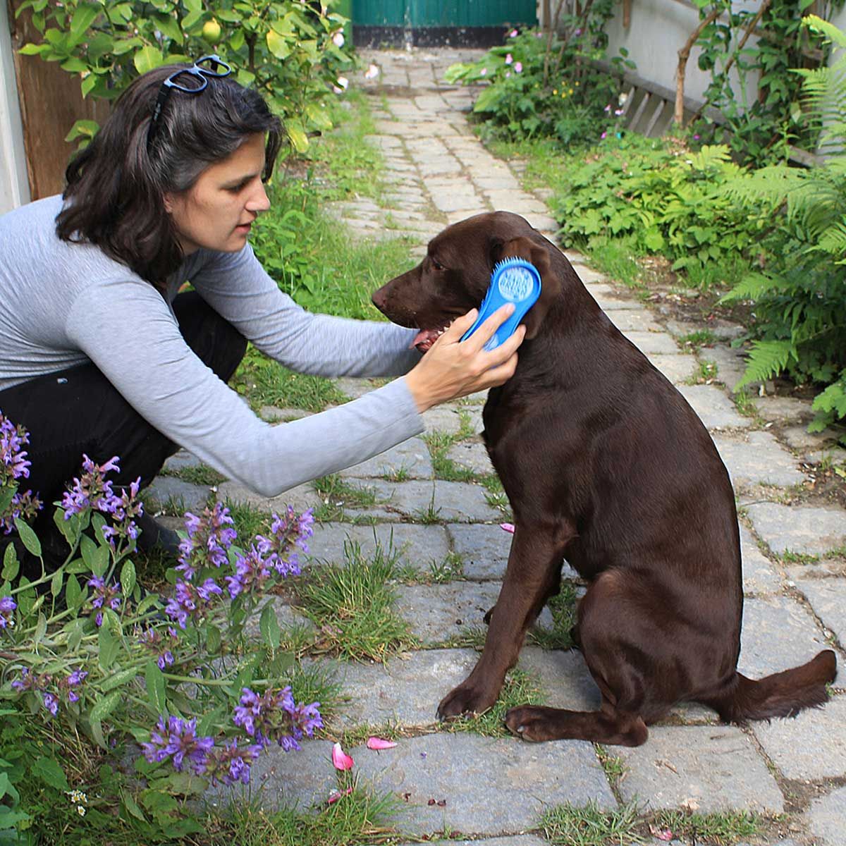 The Magic Brush är idealisk för hundar med kort och medellång päls. Den speciella strukturen och formen på borsten möjliggör effektiv och skonsam rengöring med en samtidig massageeffekt. Även perfekt för våtrengöring och för att ta bort fästingar från päls.