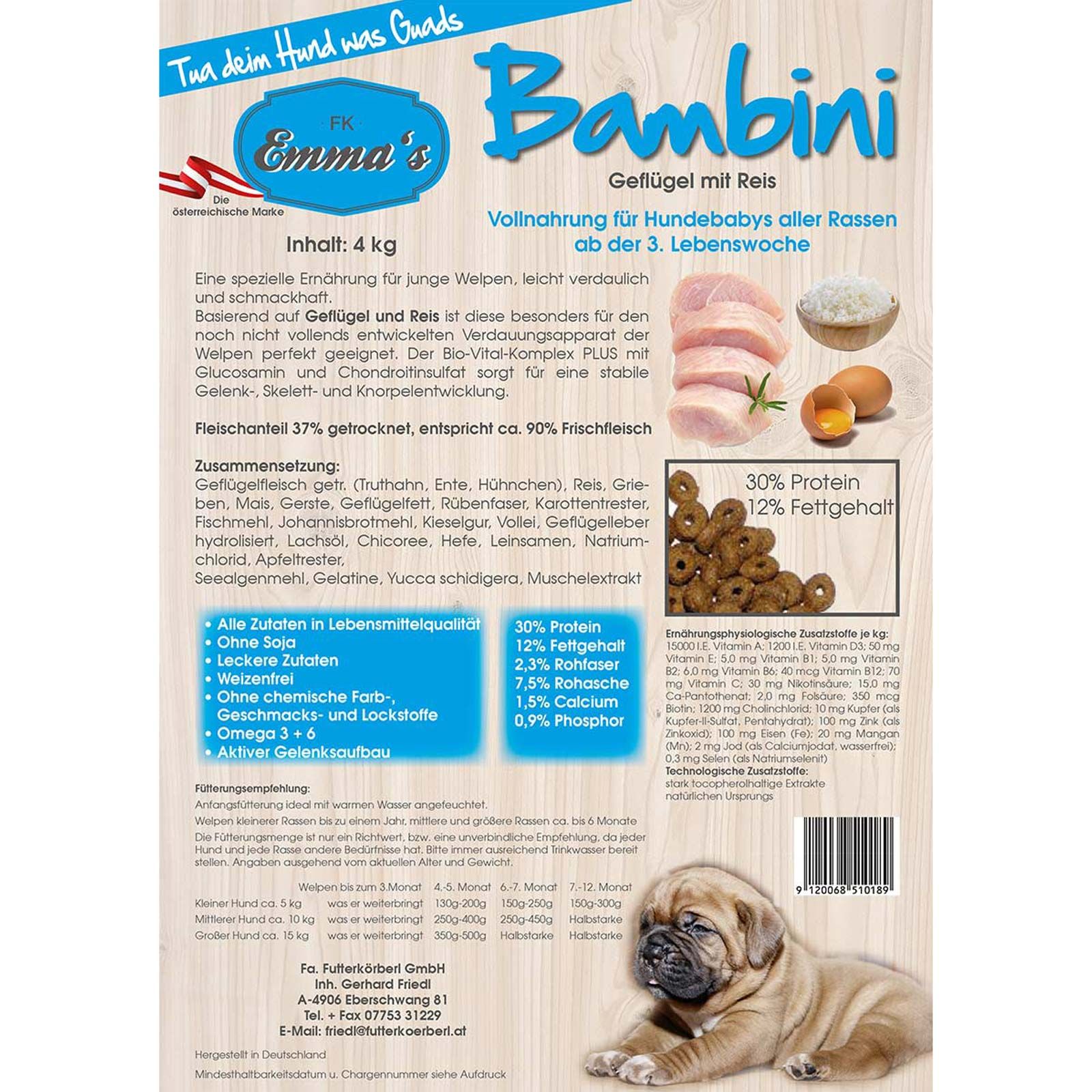 Emmas - Tua deim Hund was Guads är det österrikiska varumärket för särskilt välsmakande djurfoder som består av naturliga råvaror.
