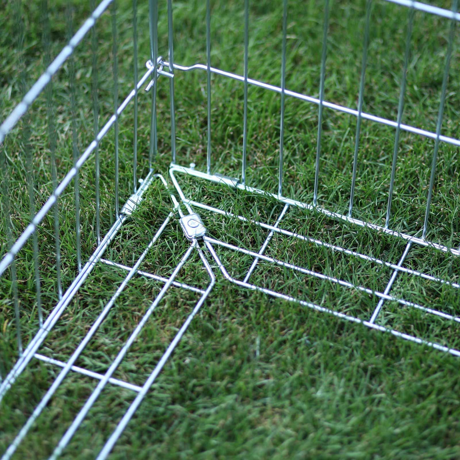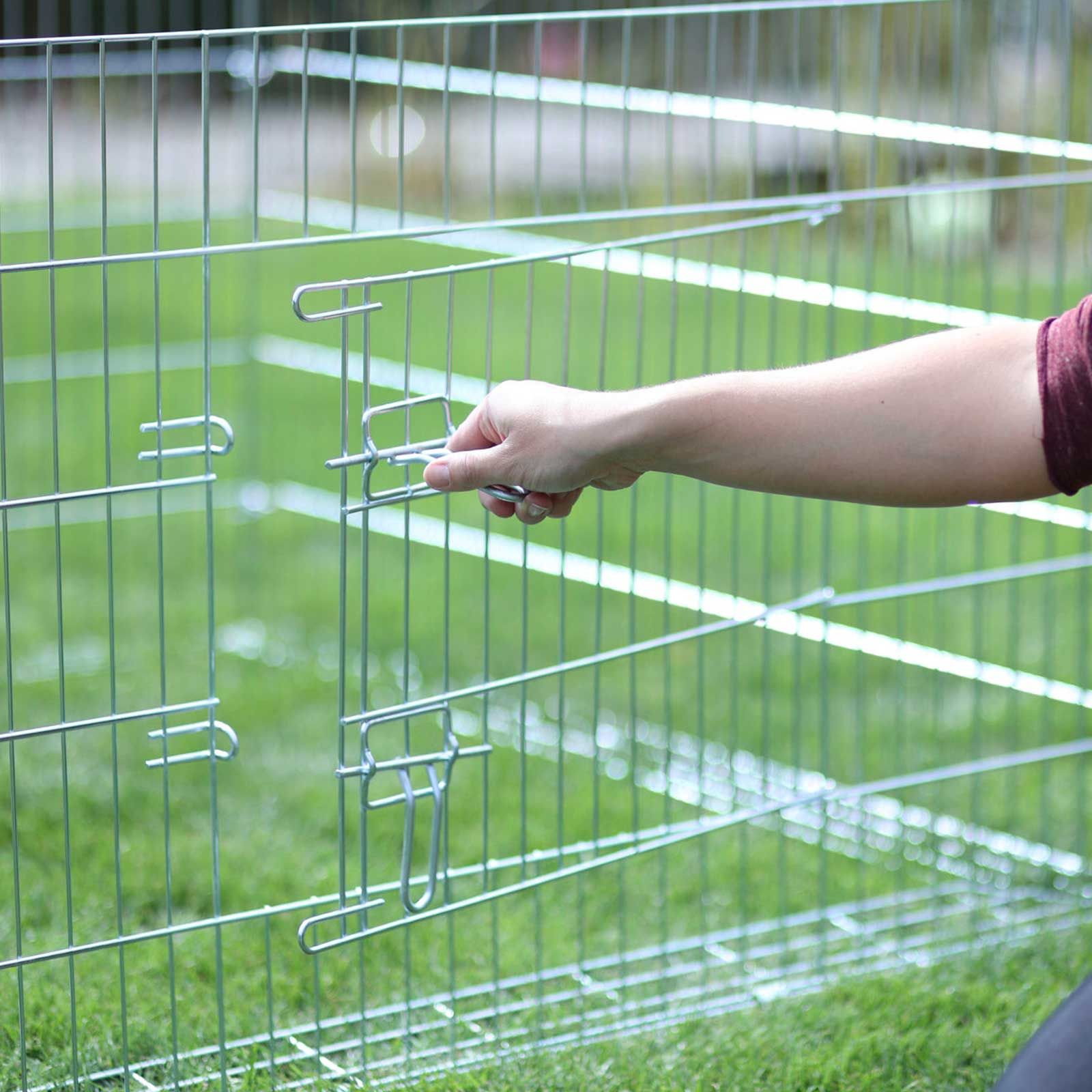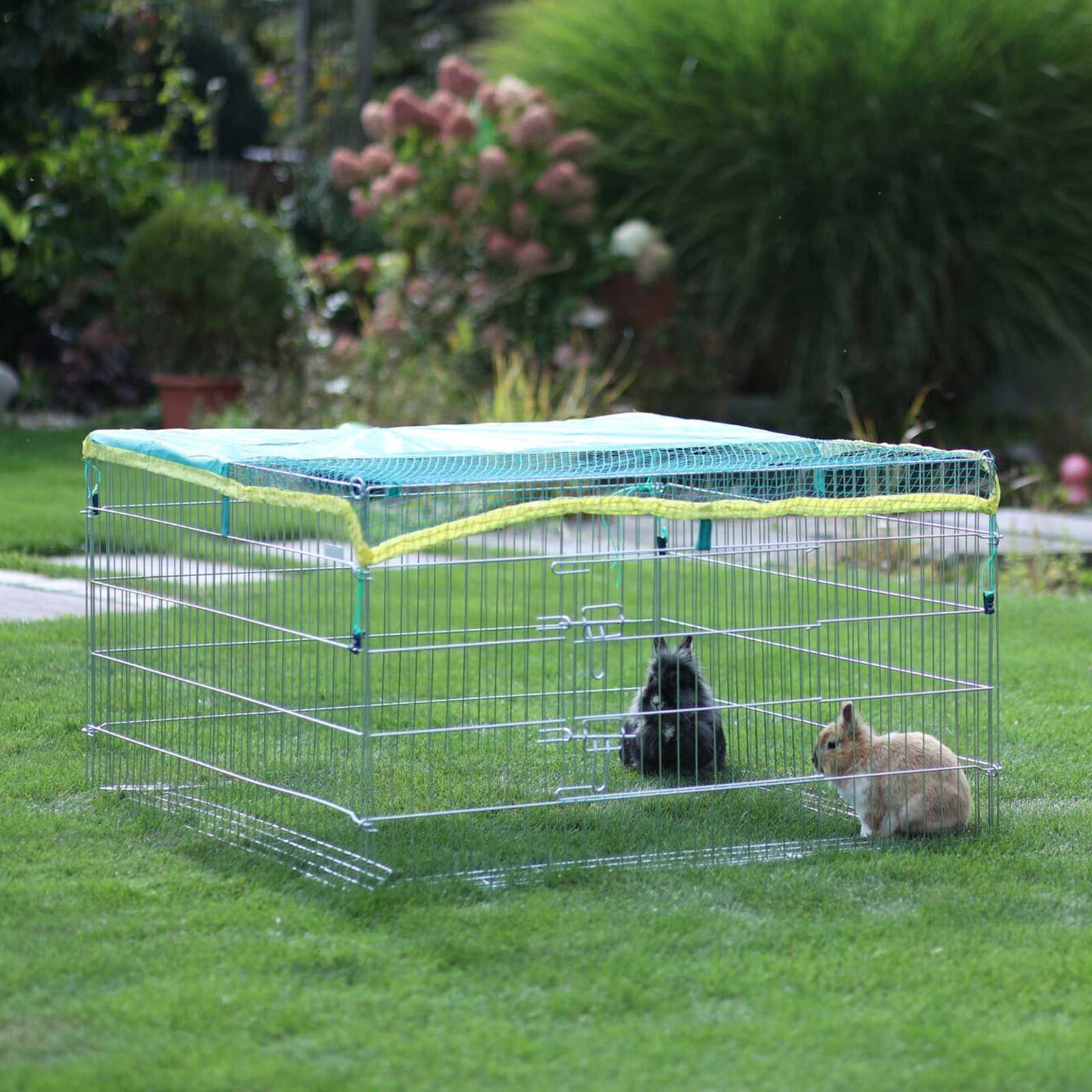 Denna galvaniserade utomhusinhägnad med utrymningsbarriär erbjuder ett allsidigt skydd för ditt husdjur. Den unika utrymningsbarriären i kanten av höljet hindrar din lilla grävkung från att fly hägnet. Täcknätet skyddar dina små från objudna gäster som katter, mård eller rovfåglar. Det integrerade solskyddet ger tillräckligt med skugga under varma dagar.