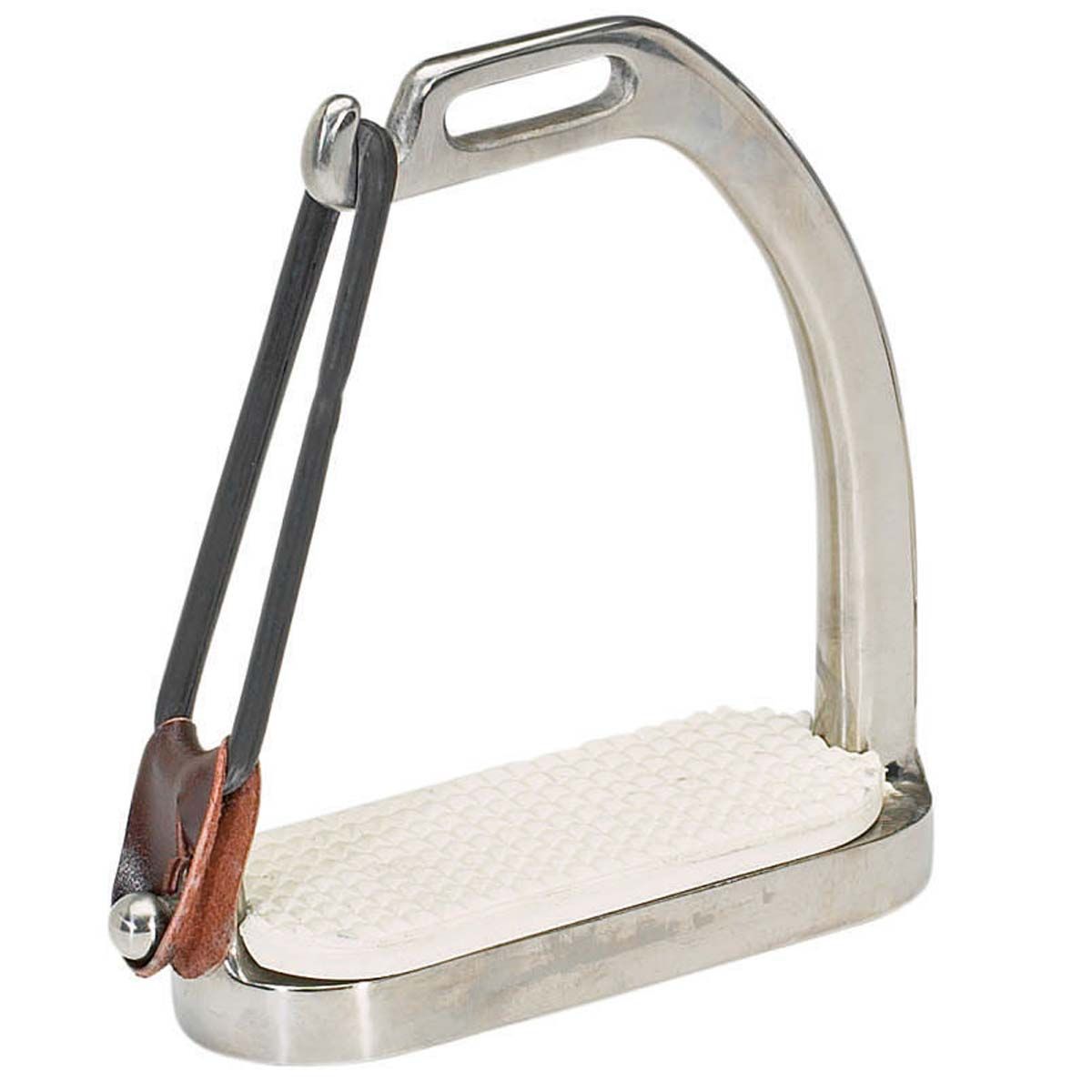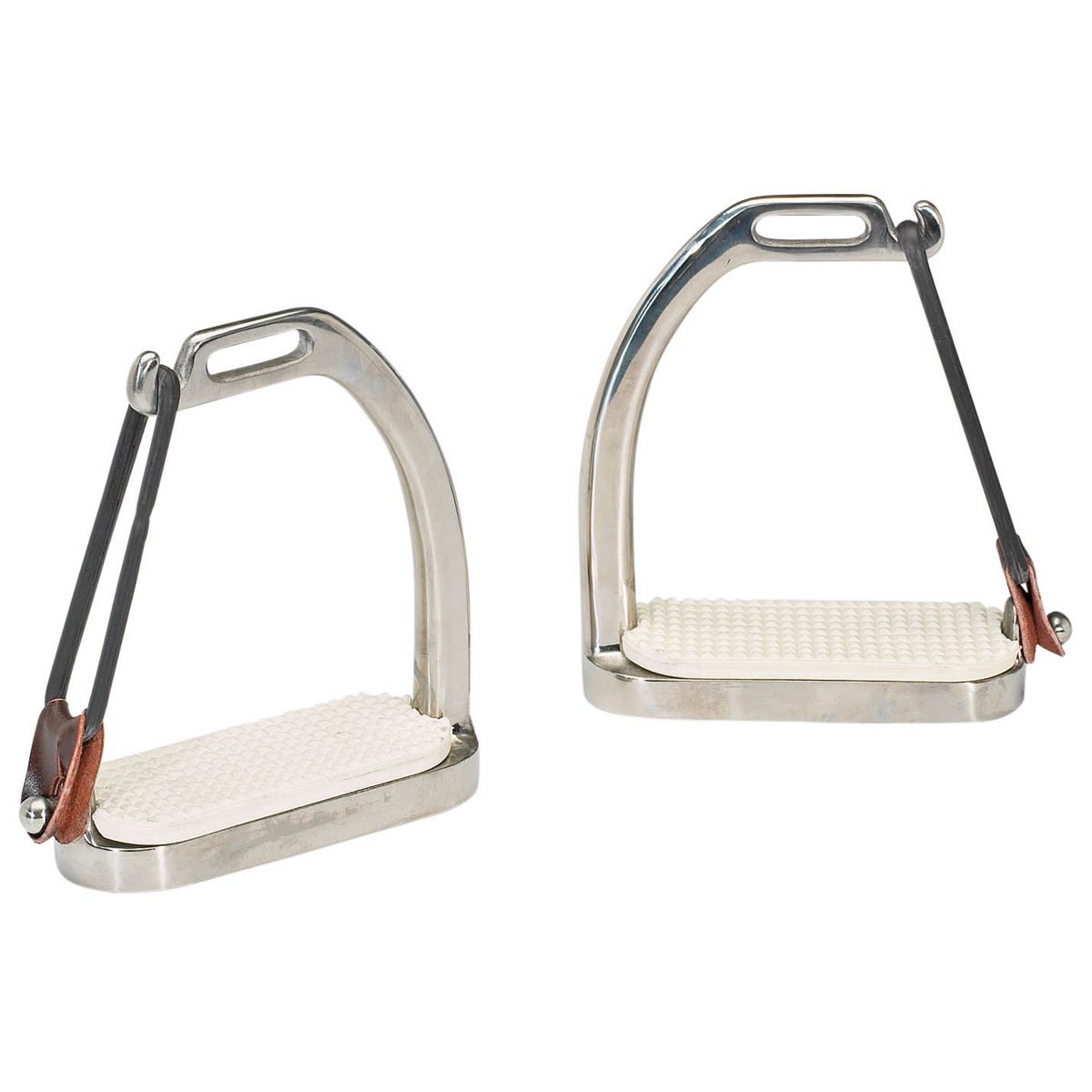Säkerhetsbygeln från BUSSE har en flexiblen på utsidan. Om ryttaren skulle falla skulle gummit lossna och foten skulle inte fastna i stigbygeln. Gummit kan bytas ut vid behov när det är gammalt eller slitet, vilket ger nytt skydd igen.