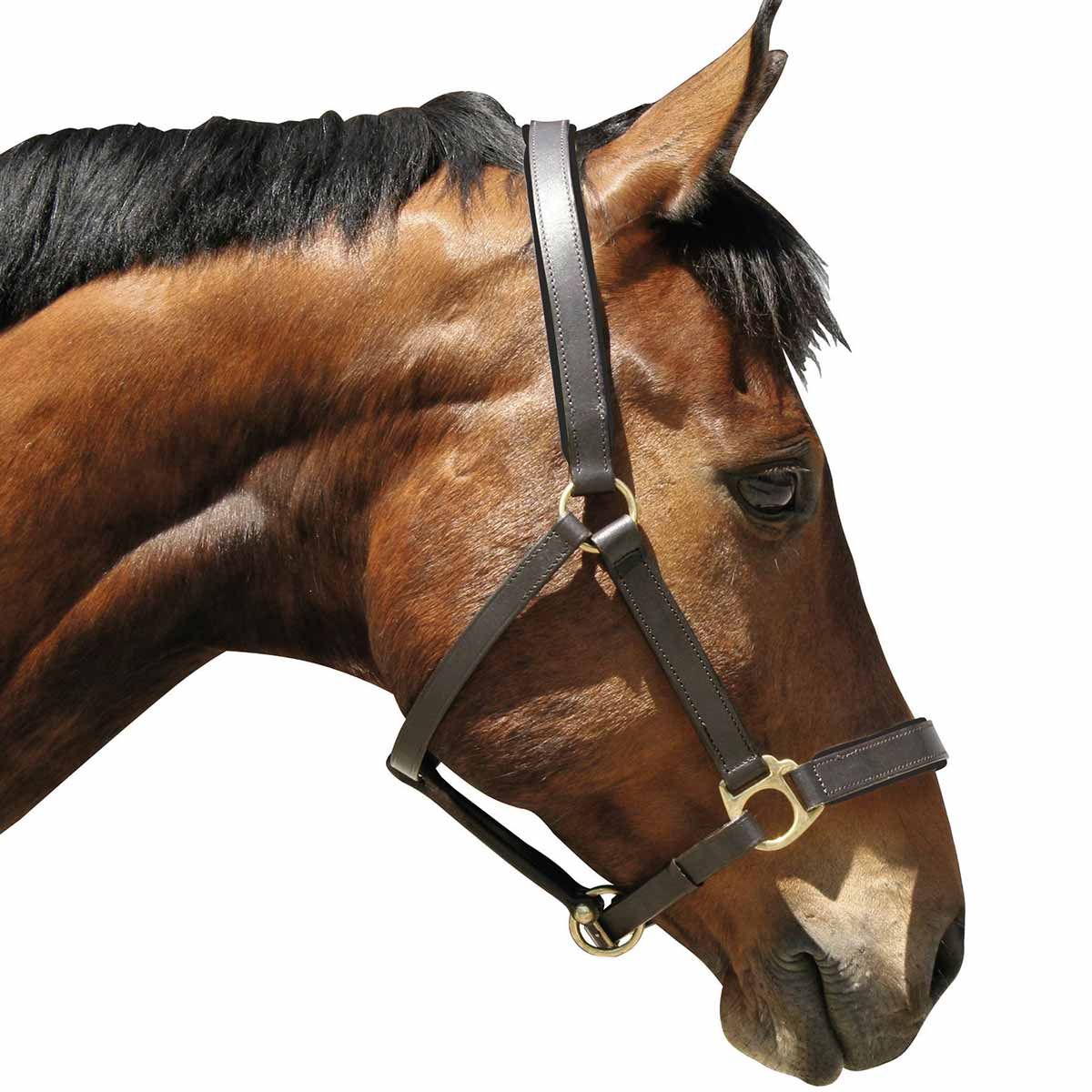 Det här halstret är tillverkat av slitstarkt läder och är dubbelsytt för utmärkt hållbarhet. Nackremmen och näsbandet är optimalt justerbara med spännen.
