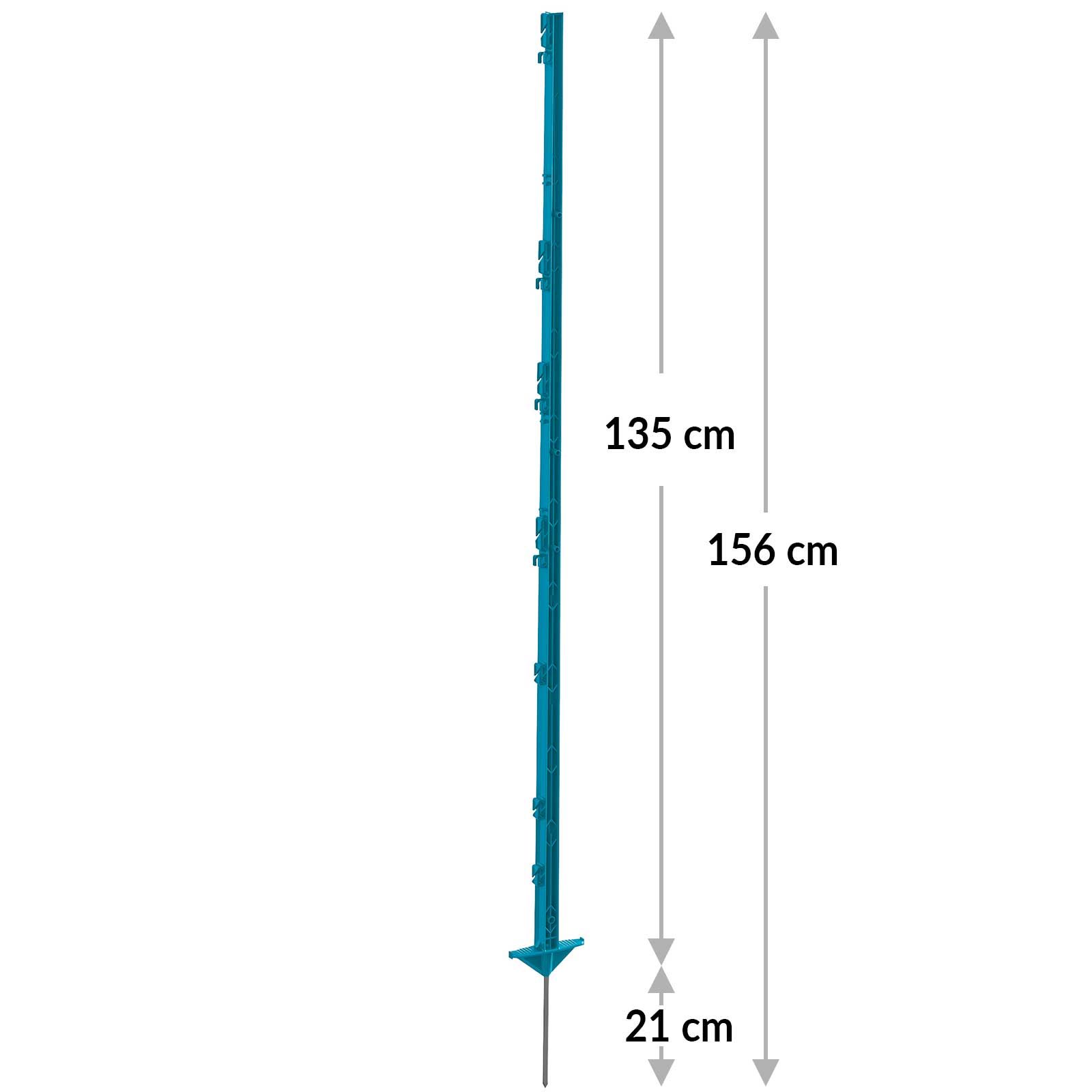 Med en total längd på 156 cm och en längd över marken på 135 cm är dessa plaststolpar för mobila betesstängsel idealiska för användning i olika miljöer och situationer. Dra nytta av en enkel och flexibel stängningslösning med plaststolparna för betesstängsel vid betesmarker.