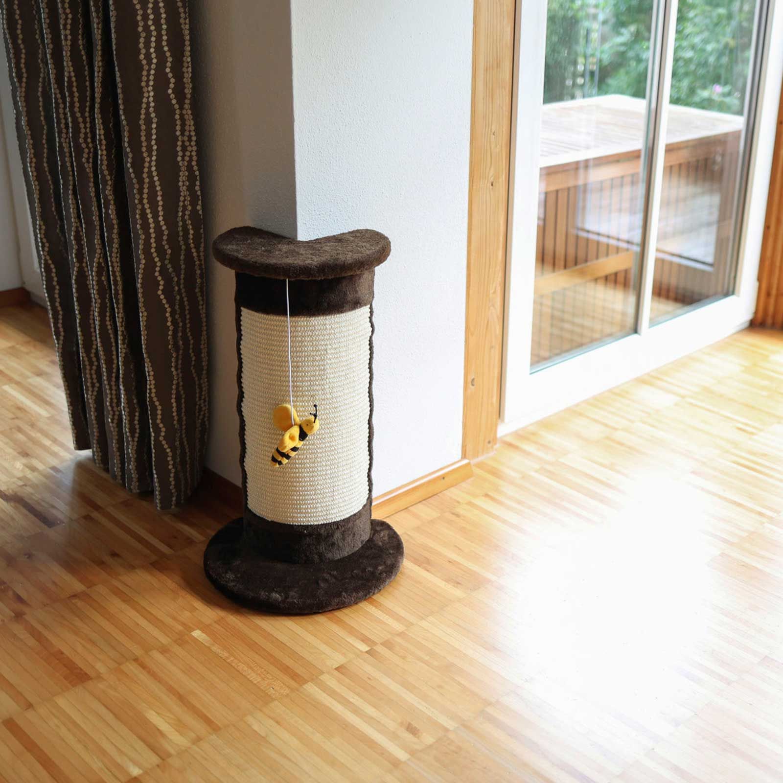 Kerbl cat corner scrappost Corner är en stabil hörnskrapstolpe för katter. Skrapstolpen är idealisk för din katt att släppa ut ånga och passar bra i varje hörn av rummet. Biet fäst vid ett band inbjuder dig också att spela.