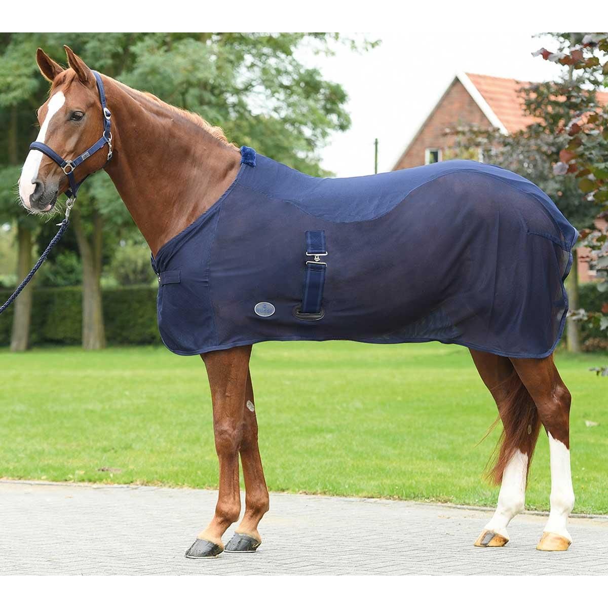 SUMMER-FLY II flugtäcket från BUSSE är det perfekta svett- och flugtäcket för sommarmånaderna. Flyskydd och andningsförmåga kombineras i en filt. Den mycket ventilerande mattan är tillverkad av snabbtorkande polyesterfleece i ryggpartiet, vilket också håller din häst i en optimal temperatur. I den nedre delen är filten tillverkad av ett slitstarkt nätmaterial som håller flugor och andra bitande insekter borta. T-bröstspännet och det integrerade, avtagbara elastiska bandet ger bästa möjliga grepp. Den mjuka skänkeln och det elastiska inslaget ger en hög komfort med hästtäcket.