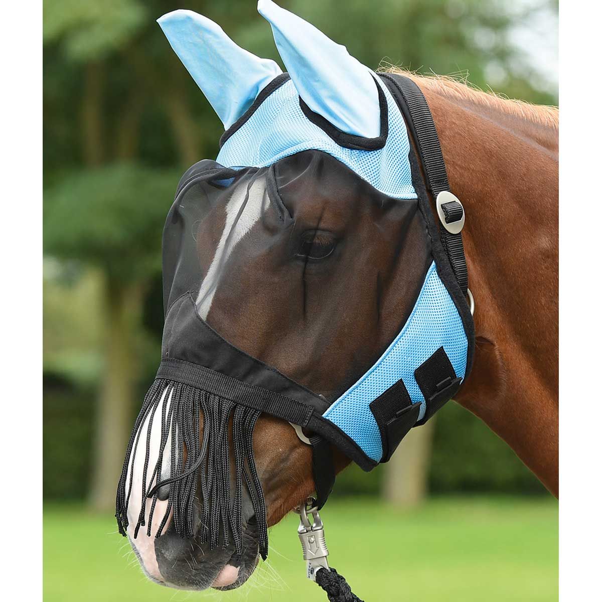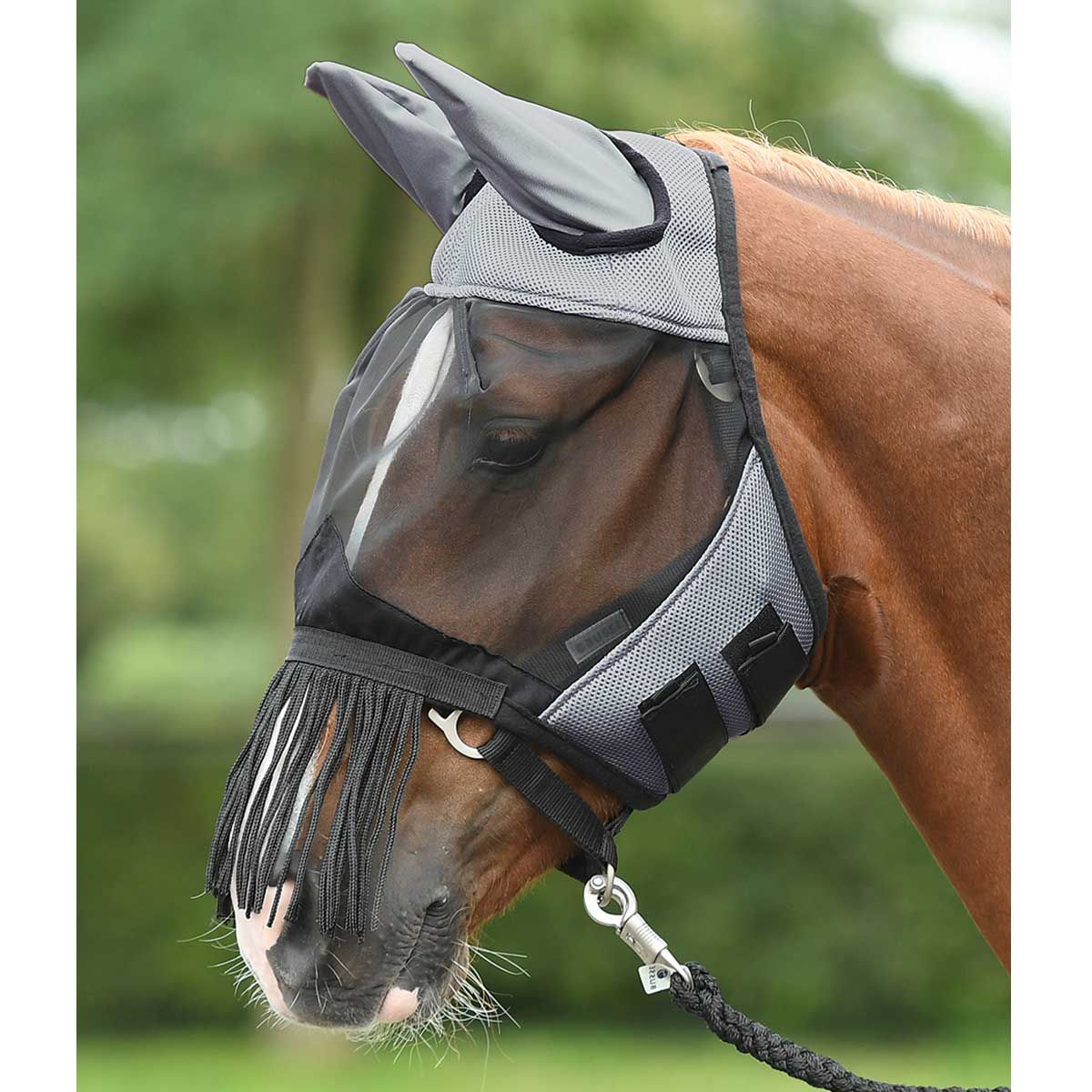 En flugmask måste sitta bra för att kunna hjälpa till. Annars kan skador uppstå. Passformen måste passa hästens/ponnyns huvud. Du kan göra en slutlig justering med hjälp av valfria inställningsalternativ på produkten. Även med en optimalt avpassad flugmask måste passformen kontrolleras regelbundet, samvetsgrant och professionellt och korrigeras vid behov. Om flugmasken glider kan synen begränsas eller förloras. För hästen, ett flygande djur, kan detta leda till panik och orsaka olyckor. Den idealiska sitsen kan äventyras genom att till exempel gnugga i huvudet eller släktingar som hålls i grupp. Användning av flugmasker rekommenderas inte i sådana enskilda fall. Kontrollera regelbundet pälsen och huden för skav. Även med optimalt passande flugmasker kan dessa orsakas av främmande ämnen (t.ex. stenar, insekter) mellan masken och hästen. Risken för hudirritation ökar på grund av svett. Rengör masken regelbundet.