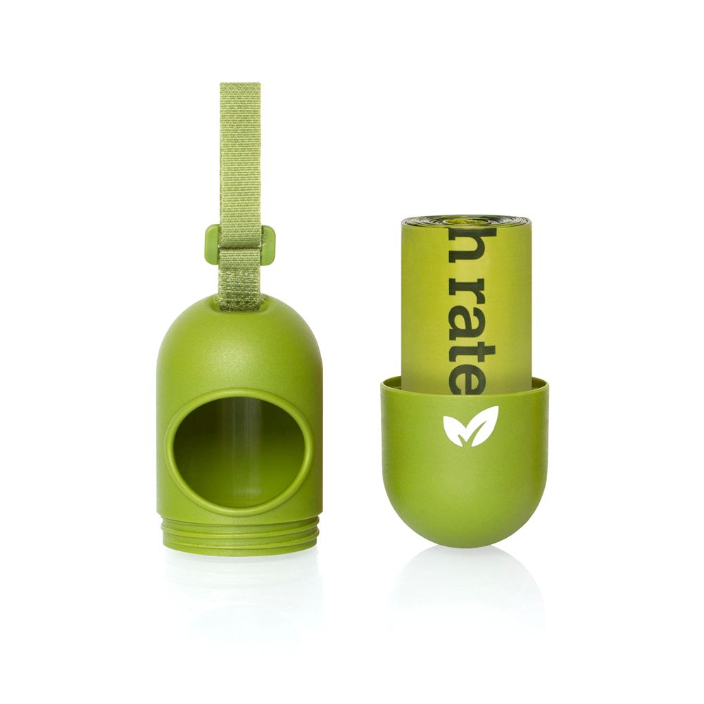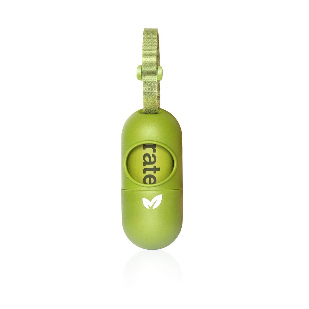 Denna gröna bajspåsdispenser är den sötaste på marknaden . En praktisk hållare för Earth Rated refill-rullarna, inklusive 15 lavendelpåsar. Denna dispenser passar alla vanliga rullar och har en justerbar rem som gör att den kan fästas i valfritt koppel.