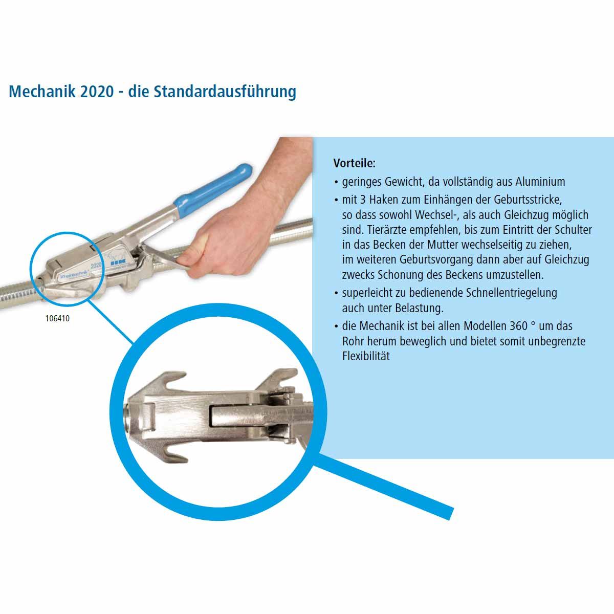 HK Birth Helper med 2020-mekanismen säkerställer en jämn och skonsam kraftöverföring till stången och förlossningsrepet. Det finns 3 krokar för att fästa förlossningsrepet, så att både alternerande och lika stora drag är möjliga.
