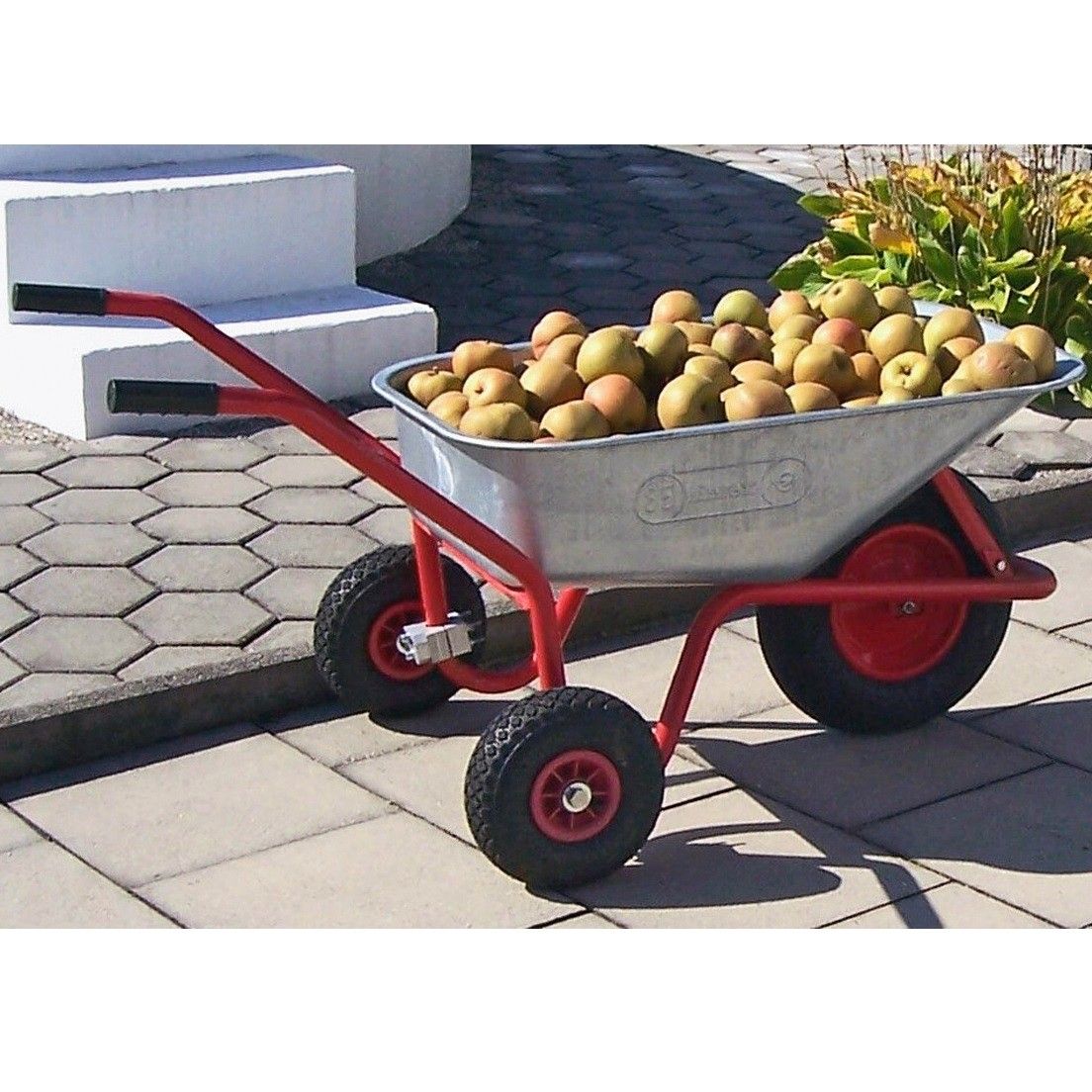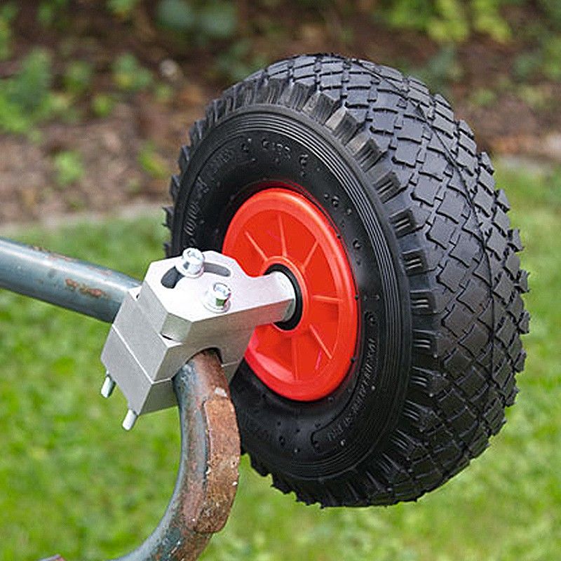 Här får du en hjuluppsättning bestående av två stödhjul för eftermontering på alla vanliga trädgårds- och byggskottar, även för äldre skottkärror som redan används. Med de extra stödhjulen på de bakre stolparna kan skottkärran skjutas utan ansträngning - särskilt med tunga laster. Det avlastar rygg och armar och gör det dagliga arbetet märkbart enklare. Passar utmärkt för trädgårdsarbete, jordbruk och byggnadsarbete. Enkel att montera tack vare de medföljande monteringsklämmorna, vilket innebär att ingen borrning behövs.