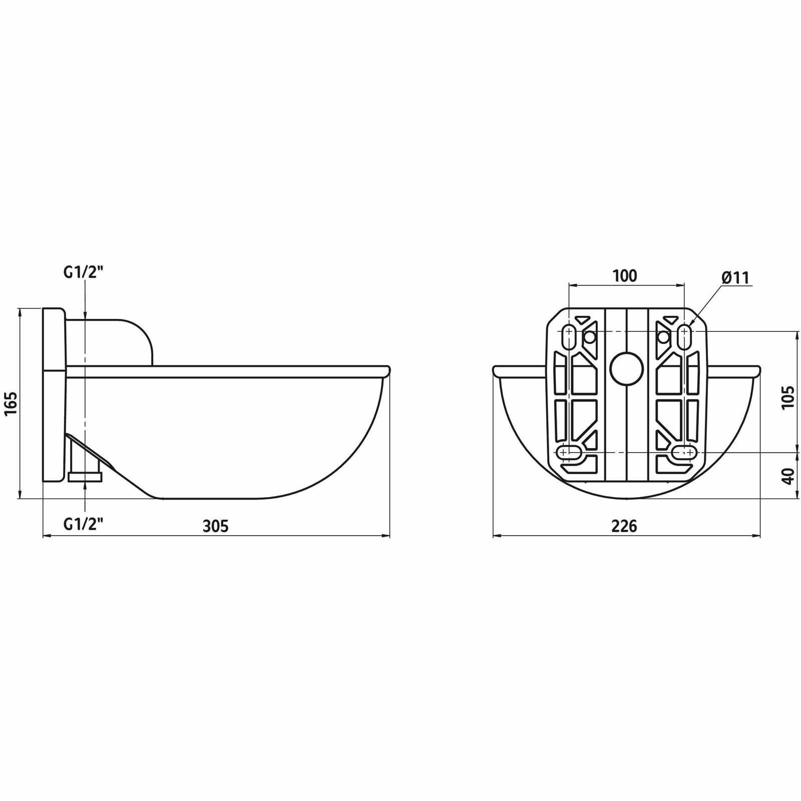 K71-drickskålen är en högkvalitativ drickskål i slagtålig plast med en djup skål för tillräcklig vattenförsörjning för mjölk- och nötkreatur. Den specialintegrerade mässingsröranslutningen garanterar en säker anslutning till vattenledningen. Anslutning möjlig uppifrån och ner med 1/2" gänga. Den smidiga och infällbara trycktungan ger ett optimalt vattenintag. Extremt stabil montering på vägg eller rör tack vare metallförstärkning. Robust mässingsventil med högt vattenflöde (ca 11 l/min vid 3 bar). 4 avlånga hål för variabel montering.