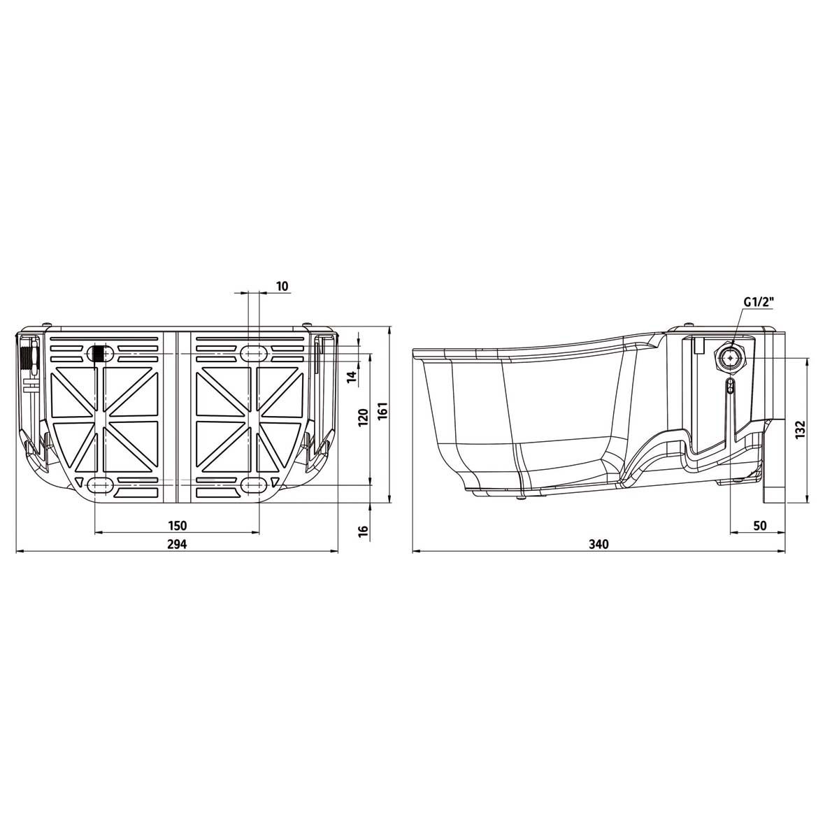 - Vattenanslutning 1/2" möjlig från vänster och höger