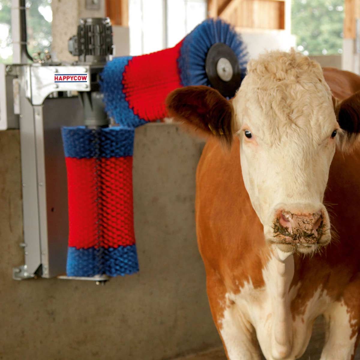 De elektriska boskapsborstarna är praktiskt taget underhållsfria. Lämplig smörjning vid intryckningspunkterna och byte av borstvalsarna i tid ökar livslängden och gör det attraktivt för djuren.