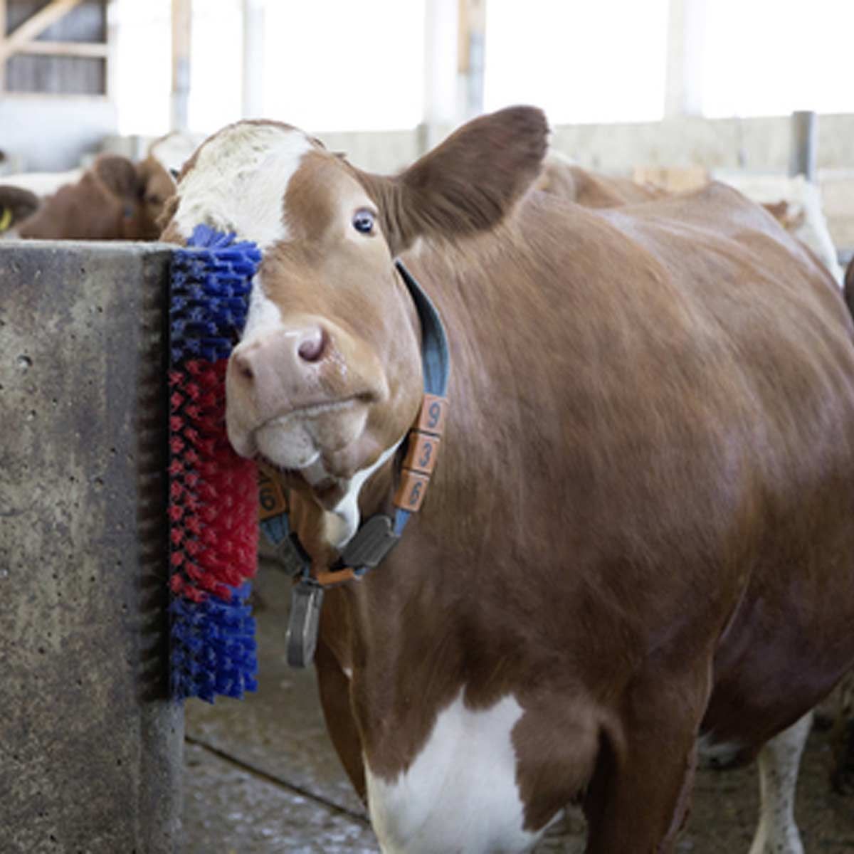 Ko-borsten kan monteras optimalt i stallet tack vare sin halvcirkelform, eftersom den kan fästas optimalt på väggar, hörn, boxar och stolpar. Särskilt huvudet och halsen på nötkreatur och hästar kan lätt nås och borstas med hjälp av den halvcirkelformade skrapborstens böjda form. Borstlängden på 5 cm är optimal för rengöring och putsning av pälsen på nötkreatur, kalvar, hästar och getter .