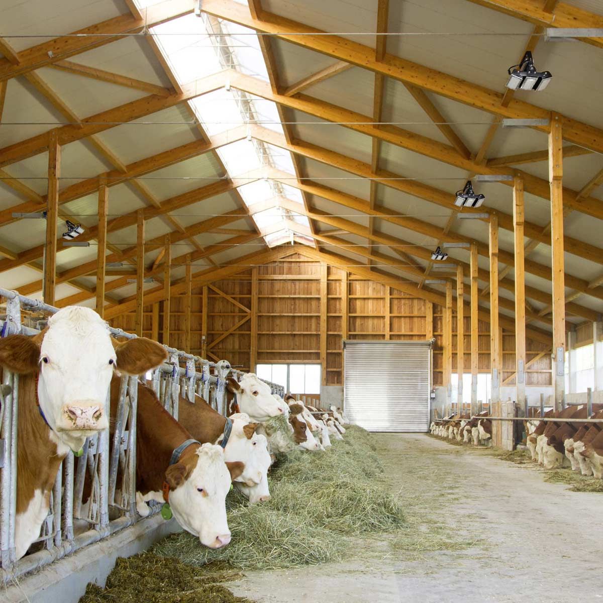 MultiLED-strålkastaren för hallar garanterar optimal ljusfördelning tack vare individuellt justerbara moduler. Strålkastaren är jet- och dammsäker (IP65) och lämpar sig även för utomhusbruk. I kombination med belysningsstyrningen (art. 345000) är den idealisk för att minimera energikostnaderna, optimera mjölken och djurens tillväxtprestanda och öka komforten för människor och djur.