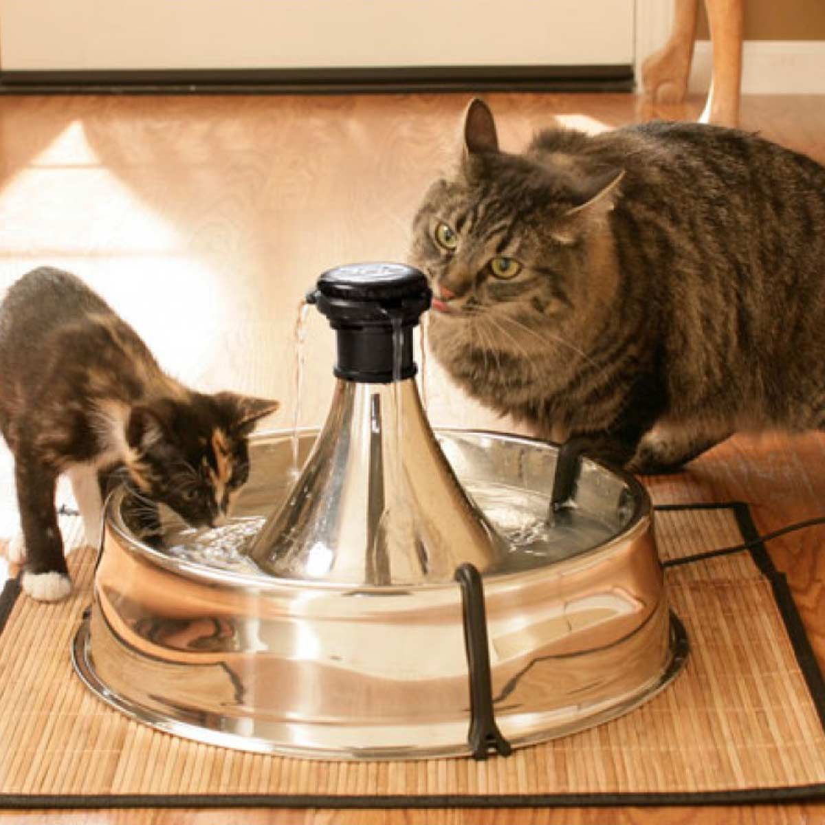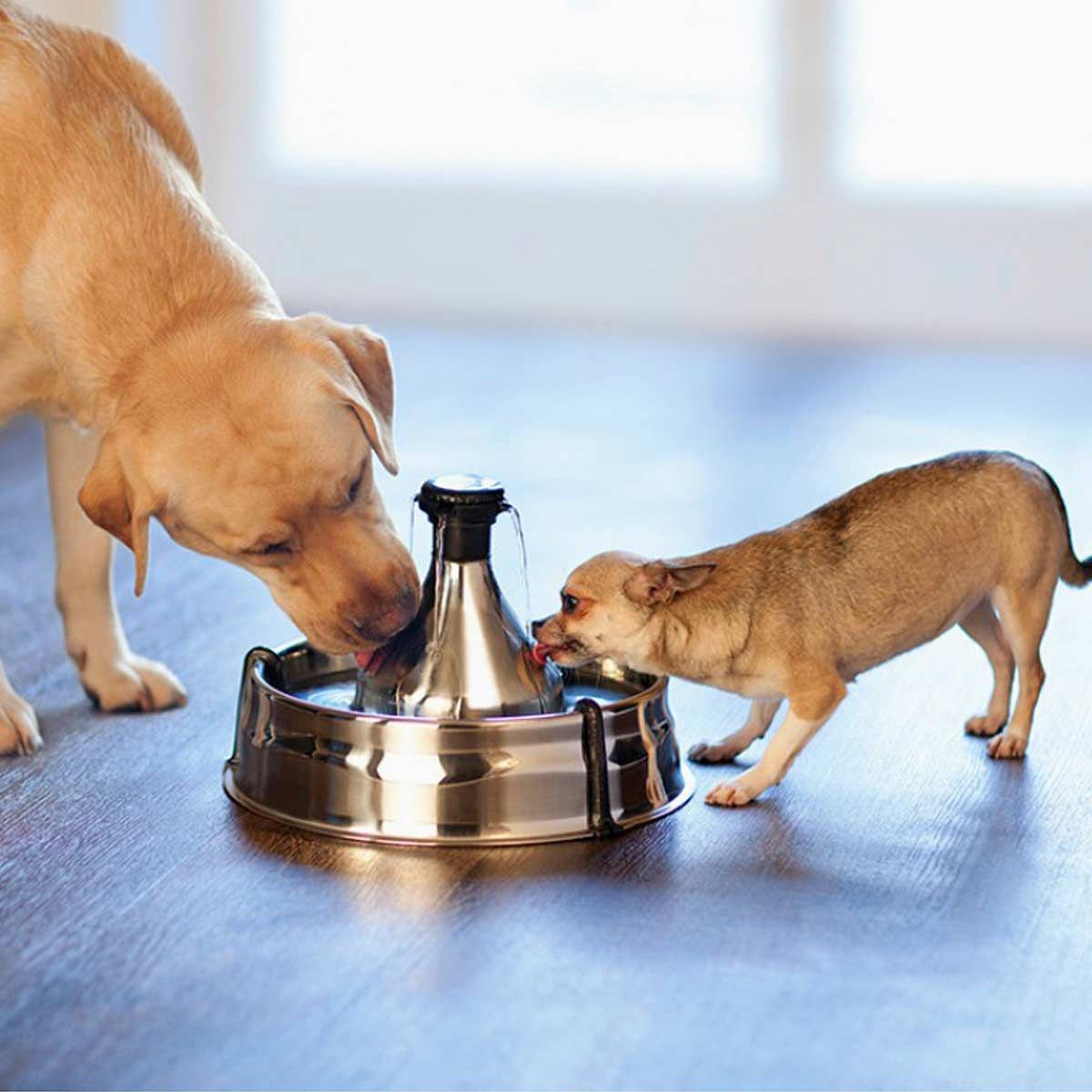 Dricksfontäner uppmuntrar dina husdjur att dricka mer eftersom de instinktivt dras till rinnande vatten. Dricksfontäner filtrerar och cirkulerar kontinuerligt vatten för att förhindra bakterietillväxt och hålla vattnet mycket renare och fräschare än stillastående vatten. Att dricka tillräckligt med vatten är viktigt för ditt husdjurs allmänna hälsa. Ditt husdjur behöver 70 ml vatten för varje kg kroppsvikt per dag. Tillgodose husdjurens vätskebehov: