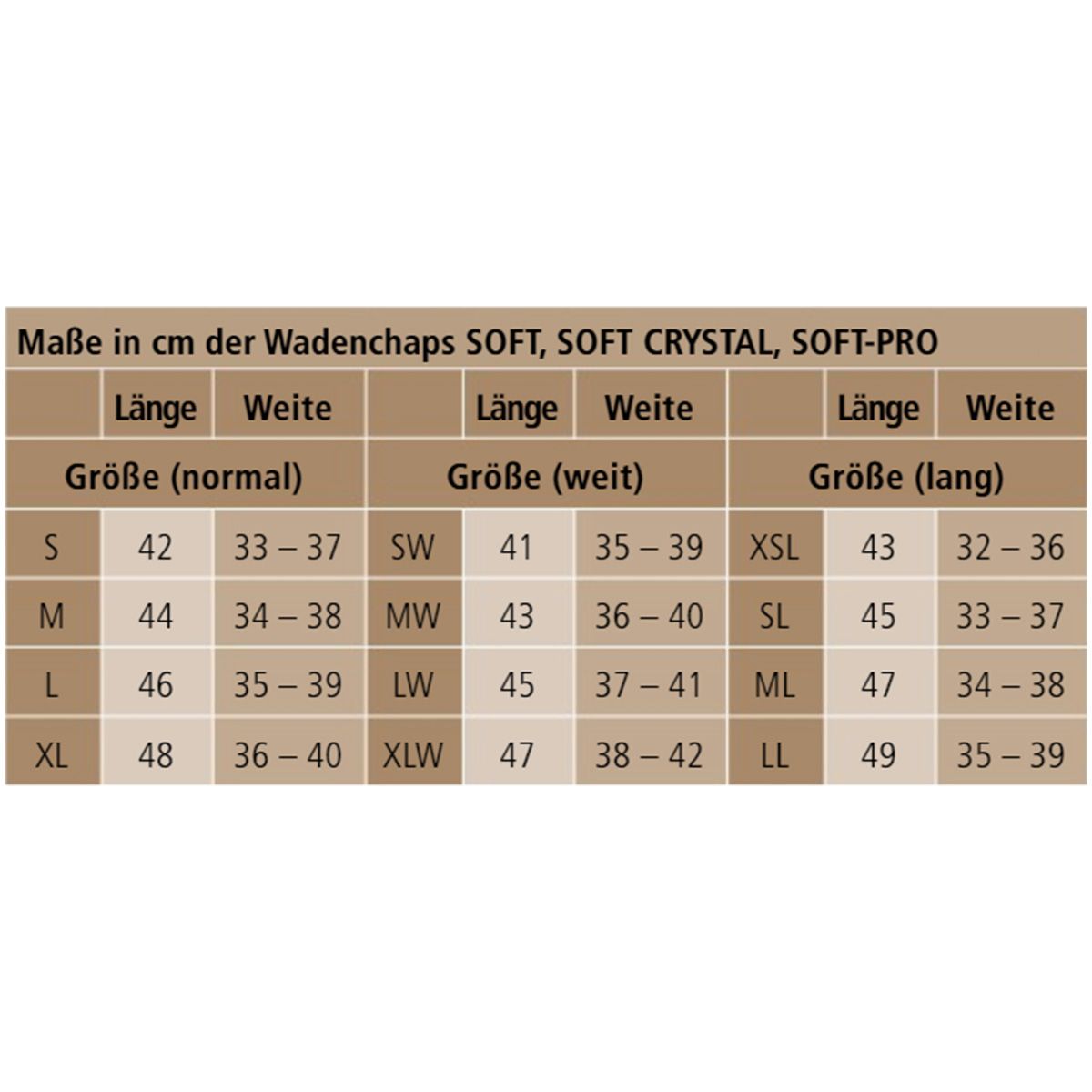 Observera att dessa modeller måste monteras mycket tätt. Den uppmätta kalvomkretsen (med byxor) ska i bredd motsvara genomsnittsvärdet i storlekstabellen (fig. 2). Längden i tabellen motsvarar längden från hälens övre kant till den högsta yttre punkten på kofoten.