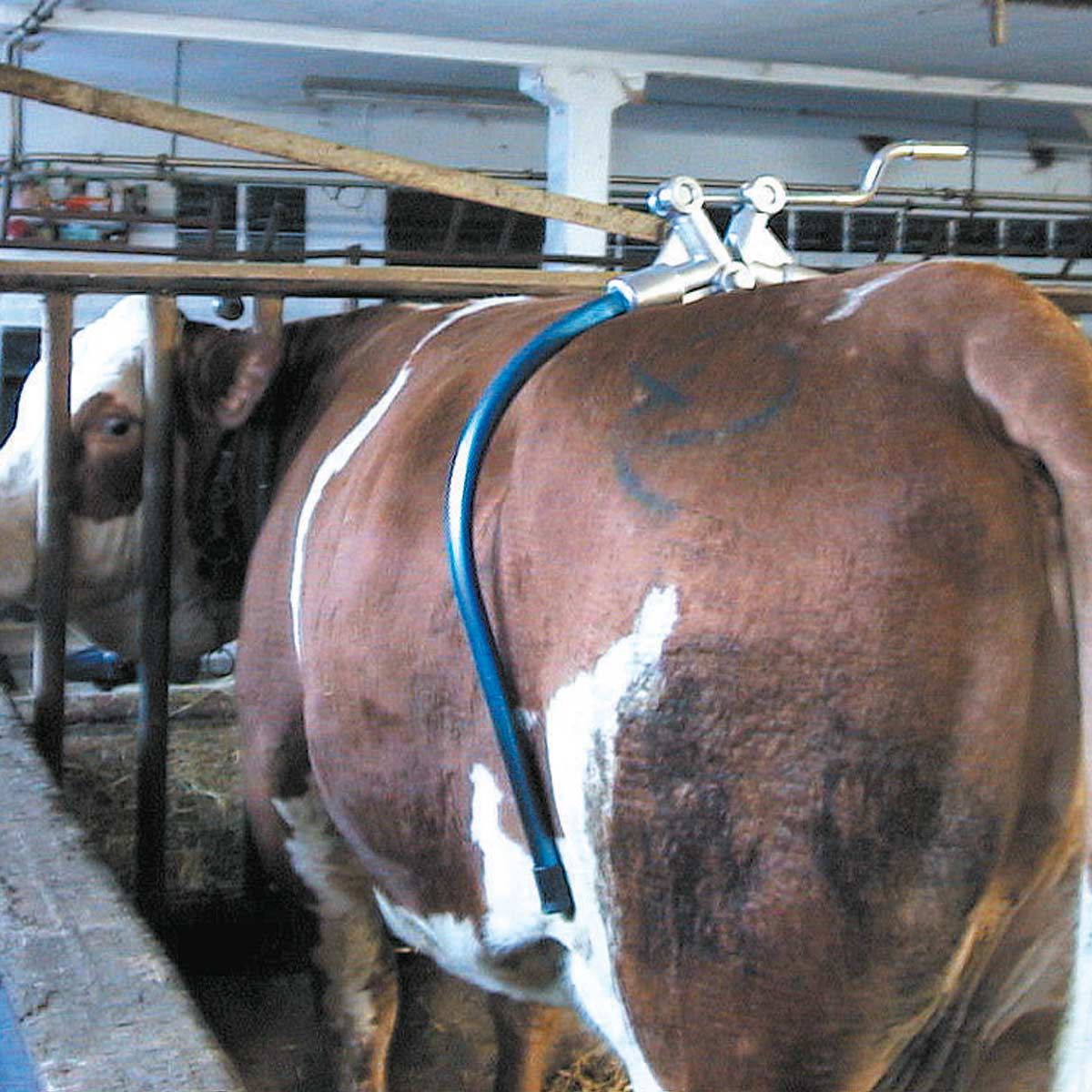 En höfthållare för kor förhindrar sparkar, även hos särskilt envisa djur.