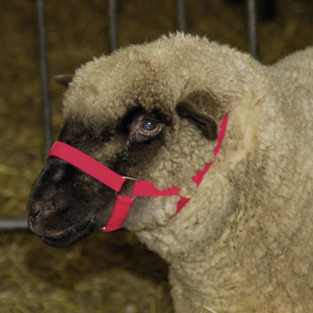 Huvudhalster för får och vädurar i stabil design. För att leda och binda får.