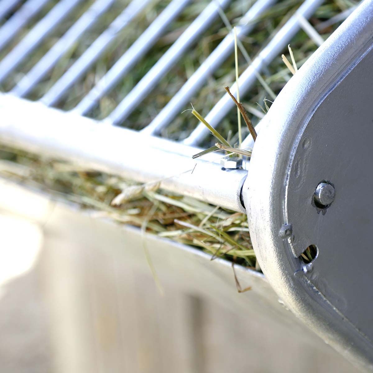 - Grovfoder kan fyllas genom att enkelt lyfta gallret framifrån eller, om det behövs, bakifrån genom en öppning i stallväggen.