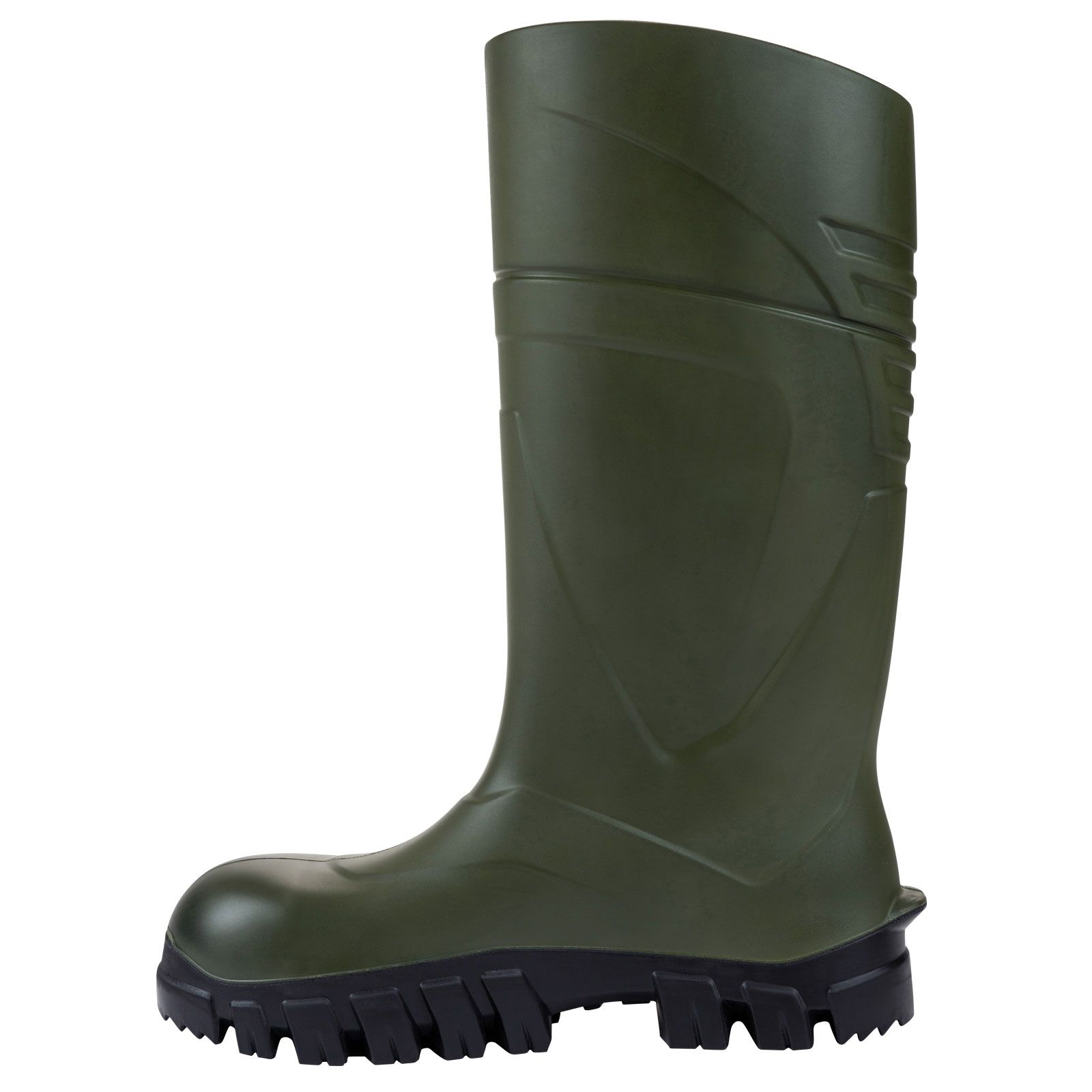 Den unika metallfria säkerhetshatten och sulan (S5) gör den här arbetsstöveln korrosionsbeständig. Den fuktabsorberande anatomiskt formade fotbädden garanterar ytterligare komfort.