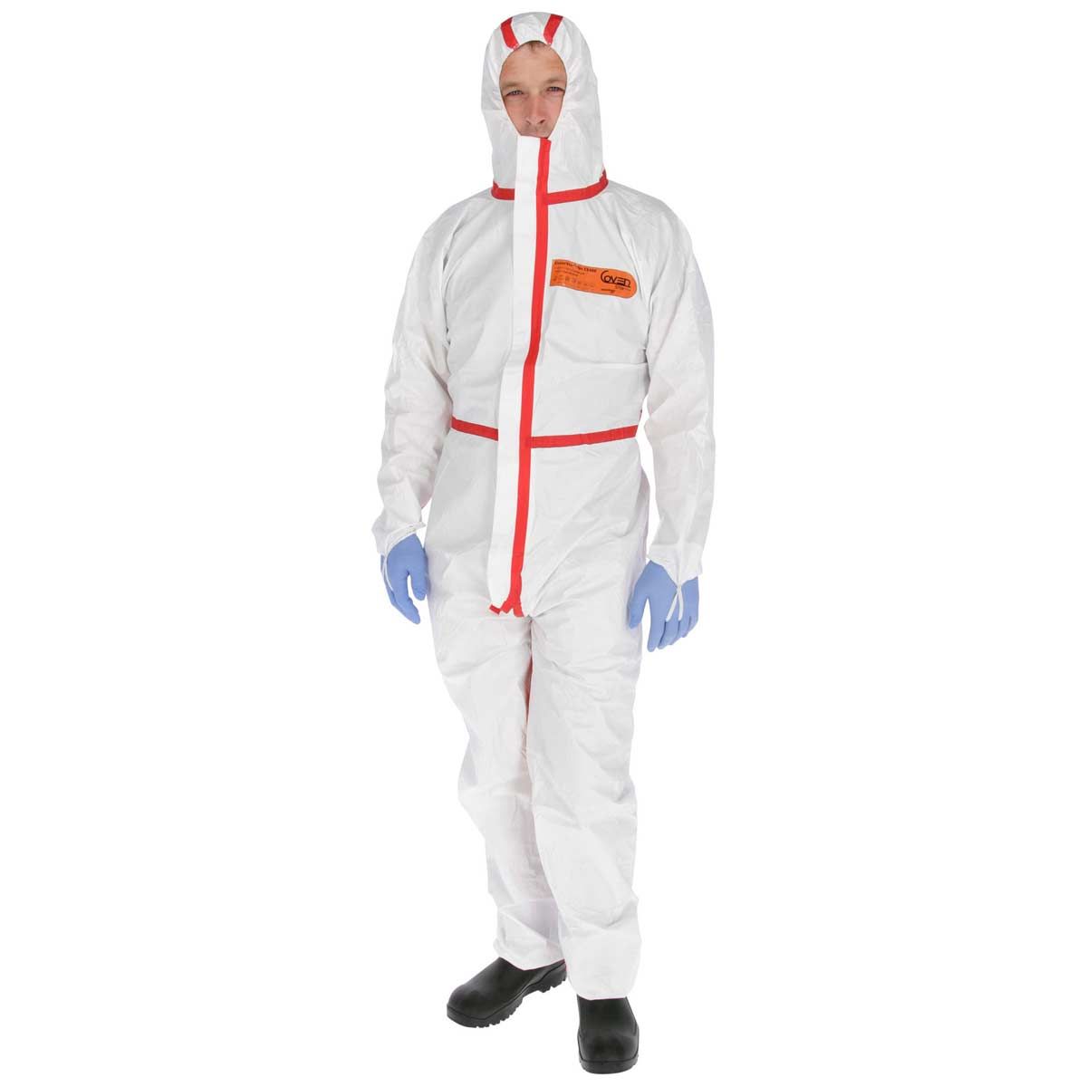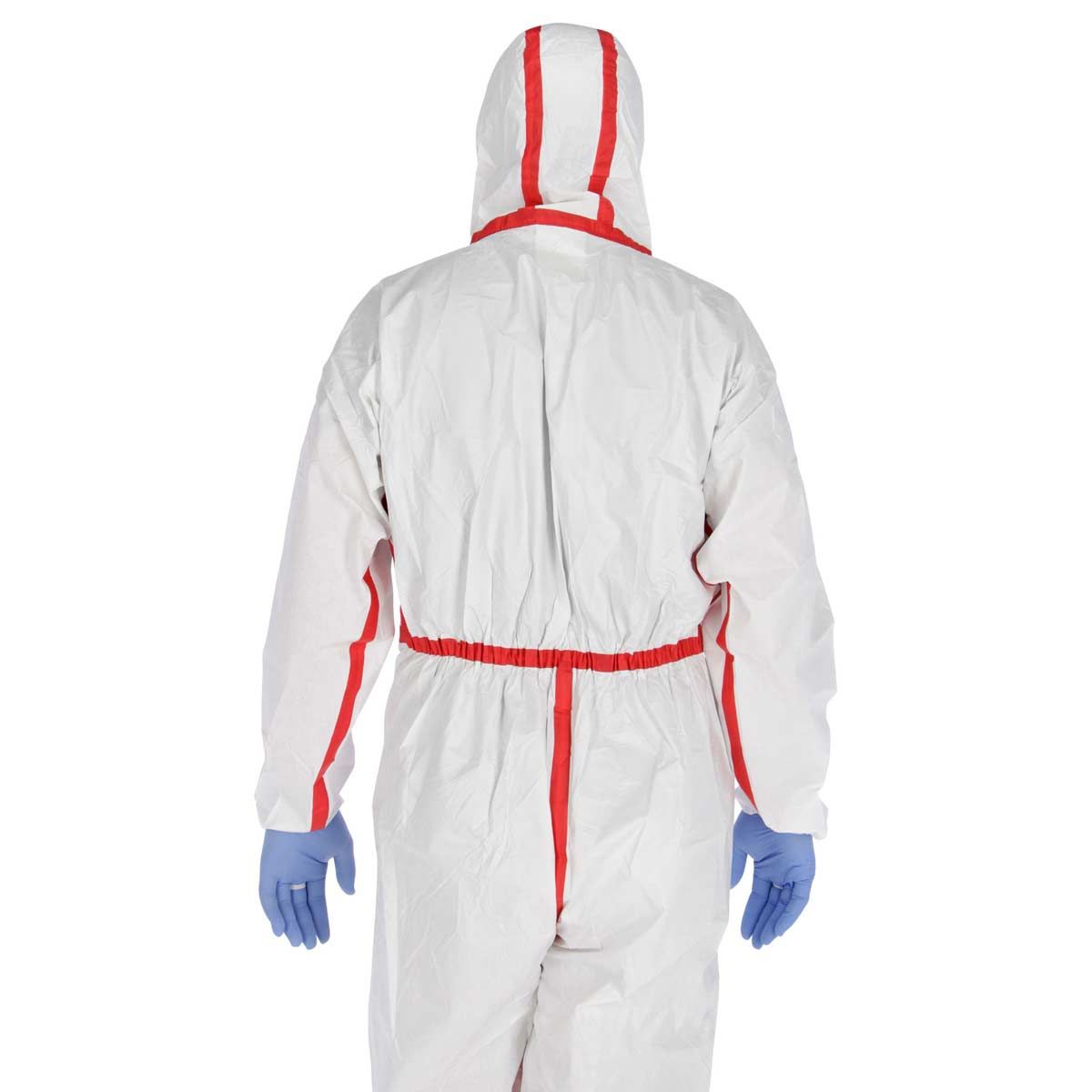 - Tillverkad av spunbonded polyetenlaminat, dvs. spunbonded tyg på insidan ger en bekväm känsla, sprutbeständig polyeten på utsidan.