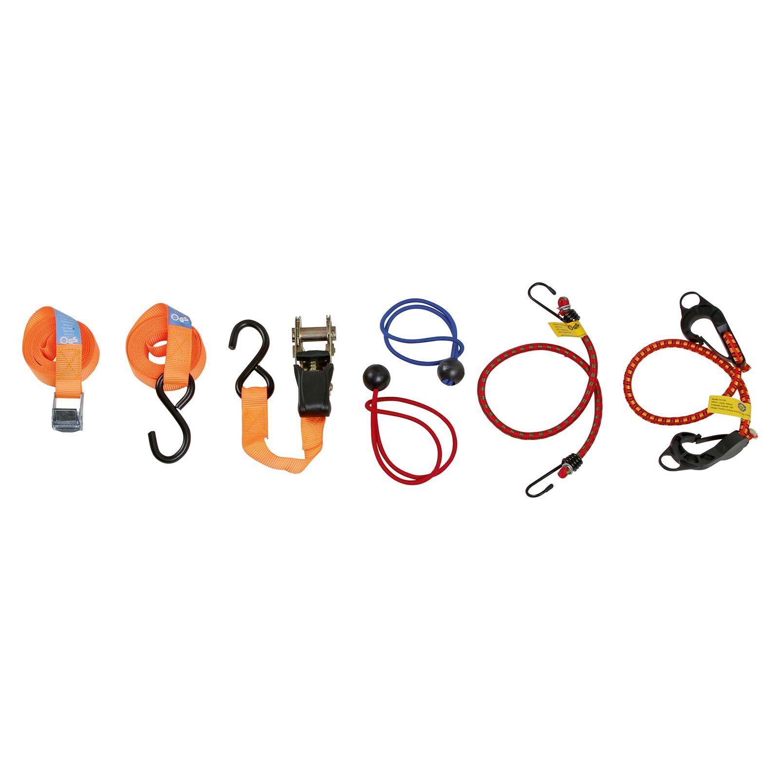 består av högkvalitativa expanderare, spännare och surrningsband, som gör det möjligt att fästa dem i många olika situationer.- 16-delar uppsättning surrningsband
