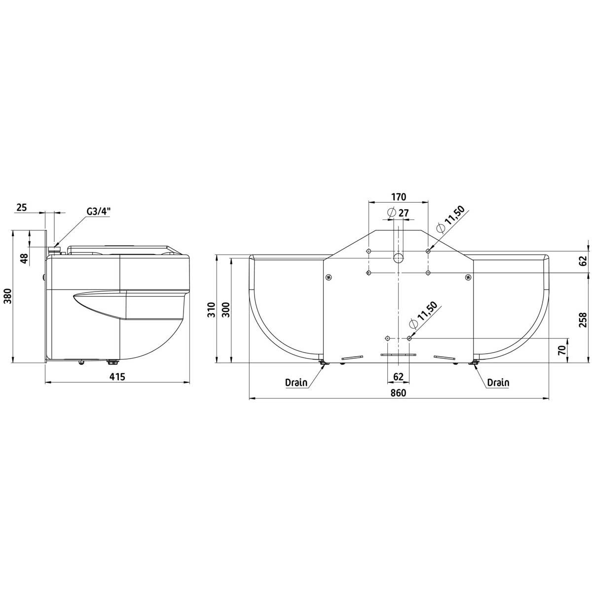- inkl. 2 avloppspluggar för enkel rengöring