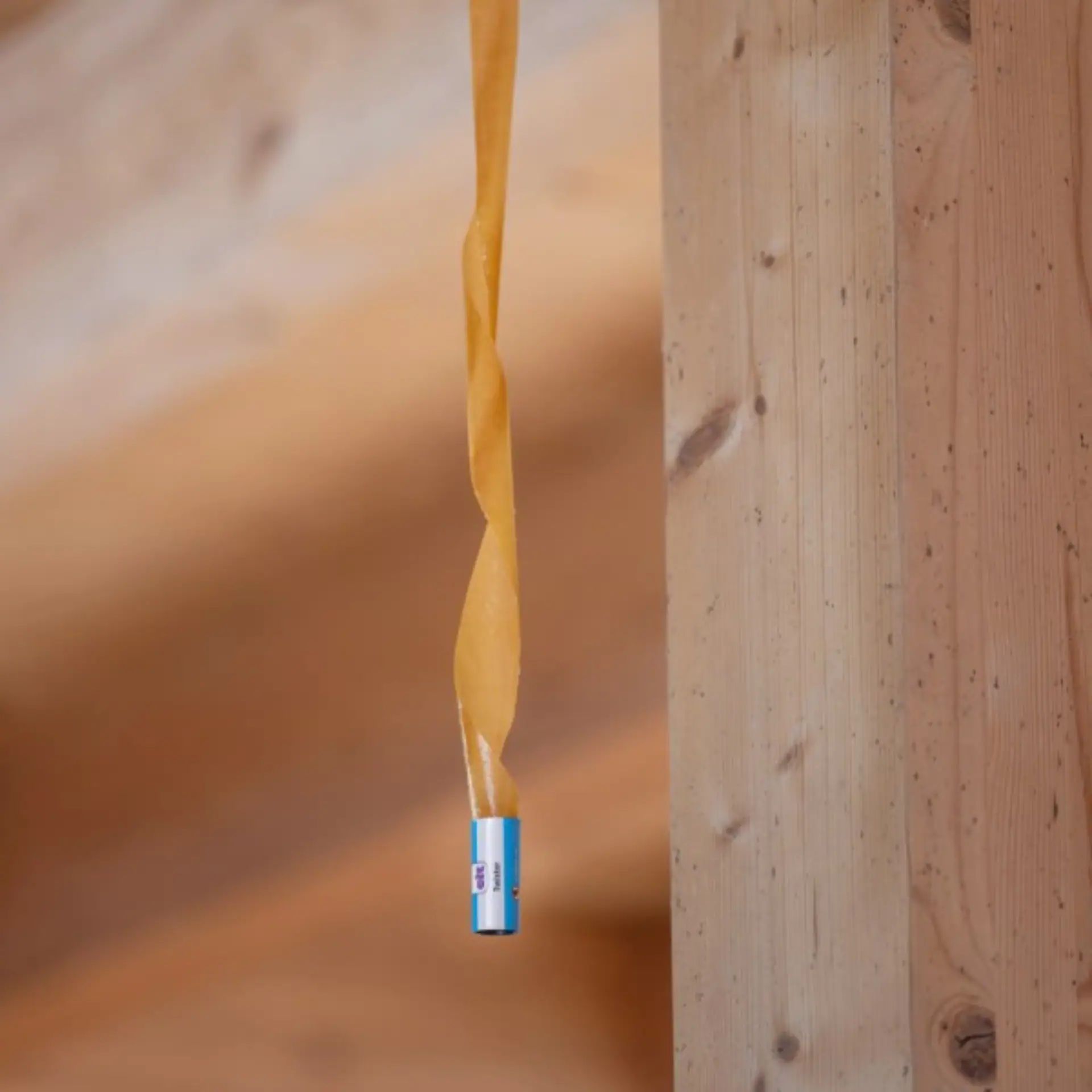 Dra ut den hoprullade Twistern ur den handvarma hylsan med hjälp av den röda öglan och vrid den försiktigt, och fäst den i taket med den medföljande häftklämman.