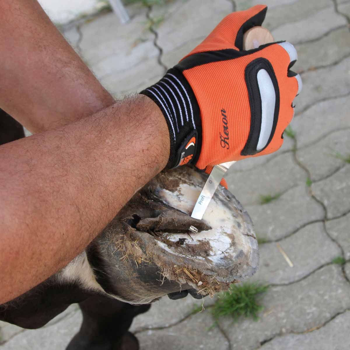 Alla professionella hov- och klöverknivar övertygar genom kompromisslös kvalitet i alla avseenden. Bladets speciella rostfria stållegering med ökat krominnehåll övertygar genom ökad slitstyrka, hållbarhet och extrem mekanisk motståndskraft. Den polerade ytan och knivstålets perfekta slipbarhet garanterar att du har ett optimalt verktyg för tuff användning på djurfältet i dina händer. Det vattenbeständiga, impregnerade handtaget av hårdträ överför användarens kraft till bladet på ett optimalt sätt.