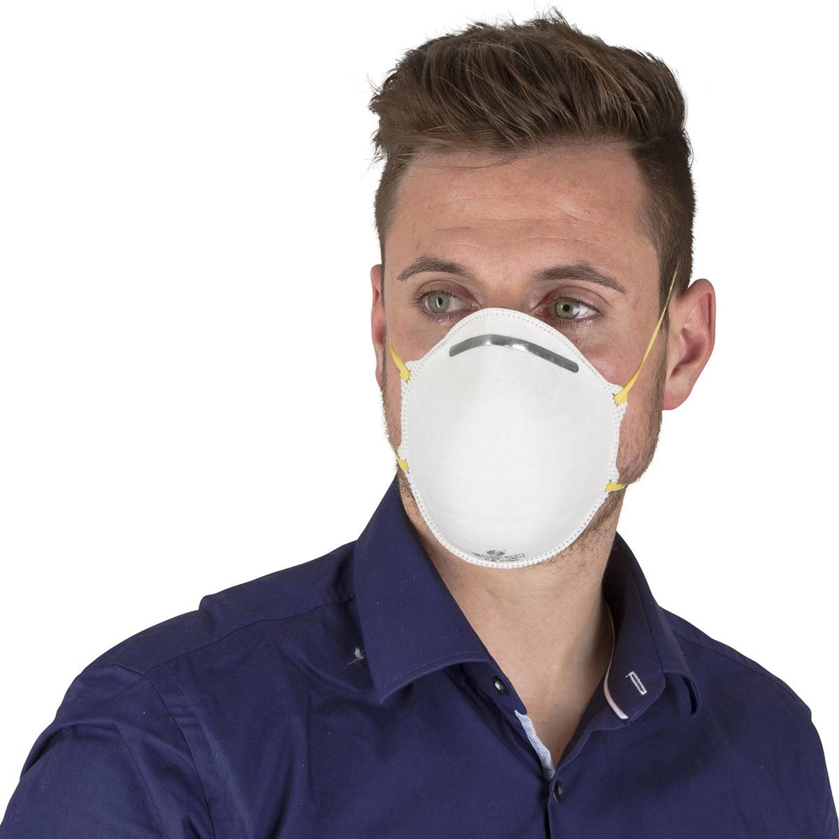 Den högkvalitativa FFP1 NR D-masken för fint damm skyddar upp till 4 gånger MAK-värdet (maximal koncentration på arbetsplatsen - gränsvärde).