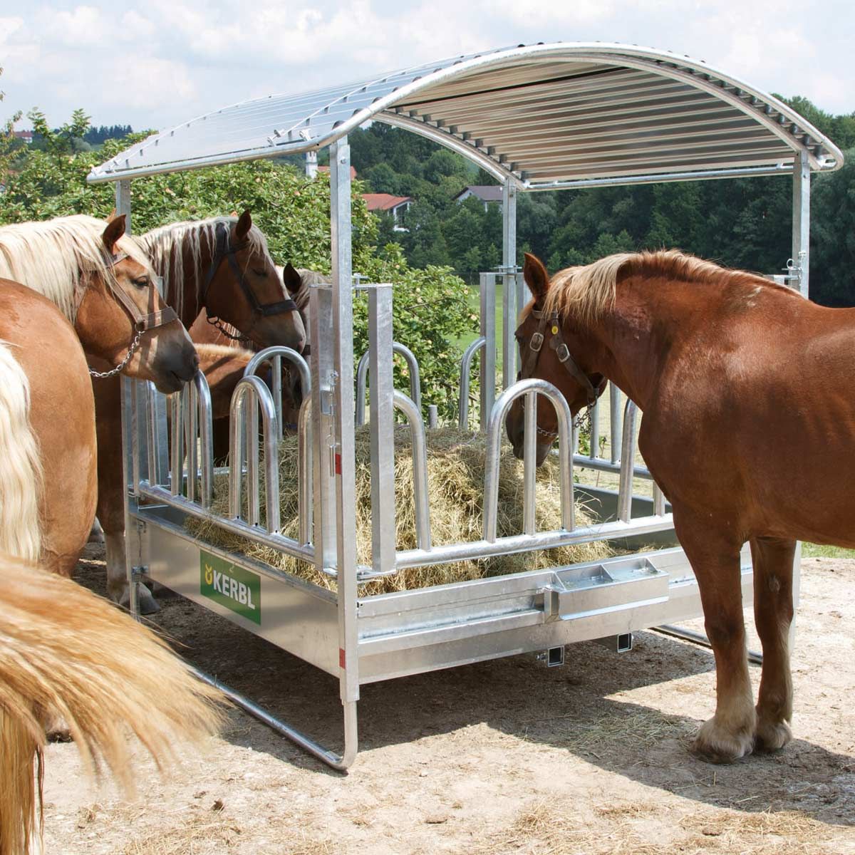 Hösthållaren med tak ser till att fodret håller sig torrt och inte smutsas ner på marken.