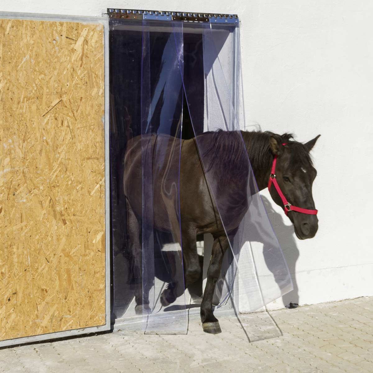 PVC-gardin transparent - perfekt för hallar, stall och paddocks.
