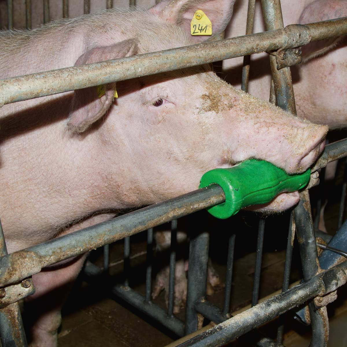 Bettcylindern för grisar levereras utan upphängningskedja och är ett modifierbart lekmaterial för grisar i enlighet med TierSchNutztV. Konstruktionen med två skal används för enkel montering på 1-tumsrör och är därför idealisk för eftermontering i grisningsburar och foderstallar. På grund av den extra hålöppningen är grisleksaken också lämplig för att fästas på leksakskedjor.