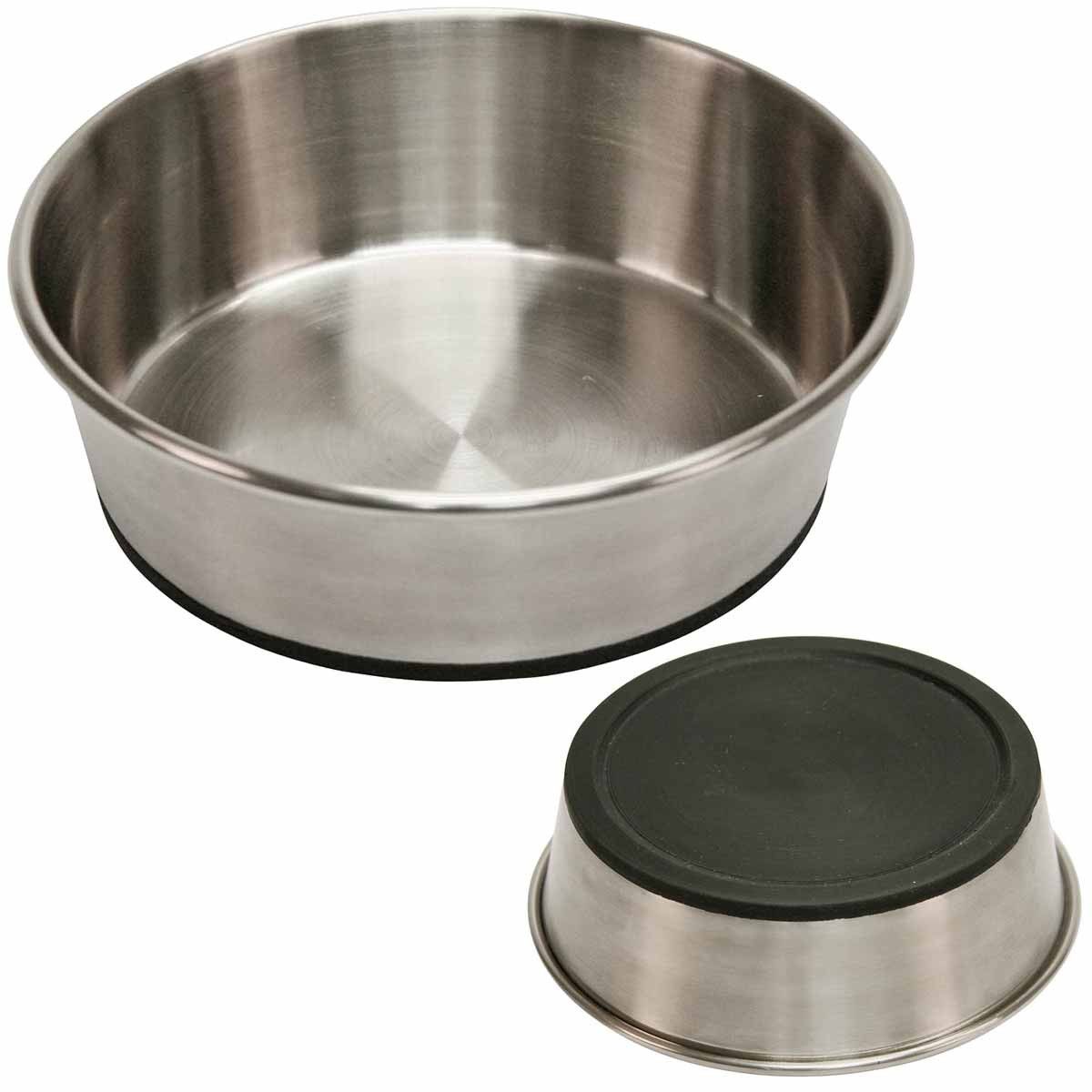 Denna skål i rostfritt stål har en halkfri gummibas. Gummibasen säkerställer hög stabilitet och förhindrar halkning på släta golv. Matskålen är lätt att rengöra och tål maskindisk.