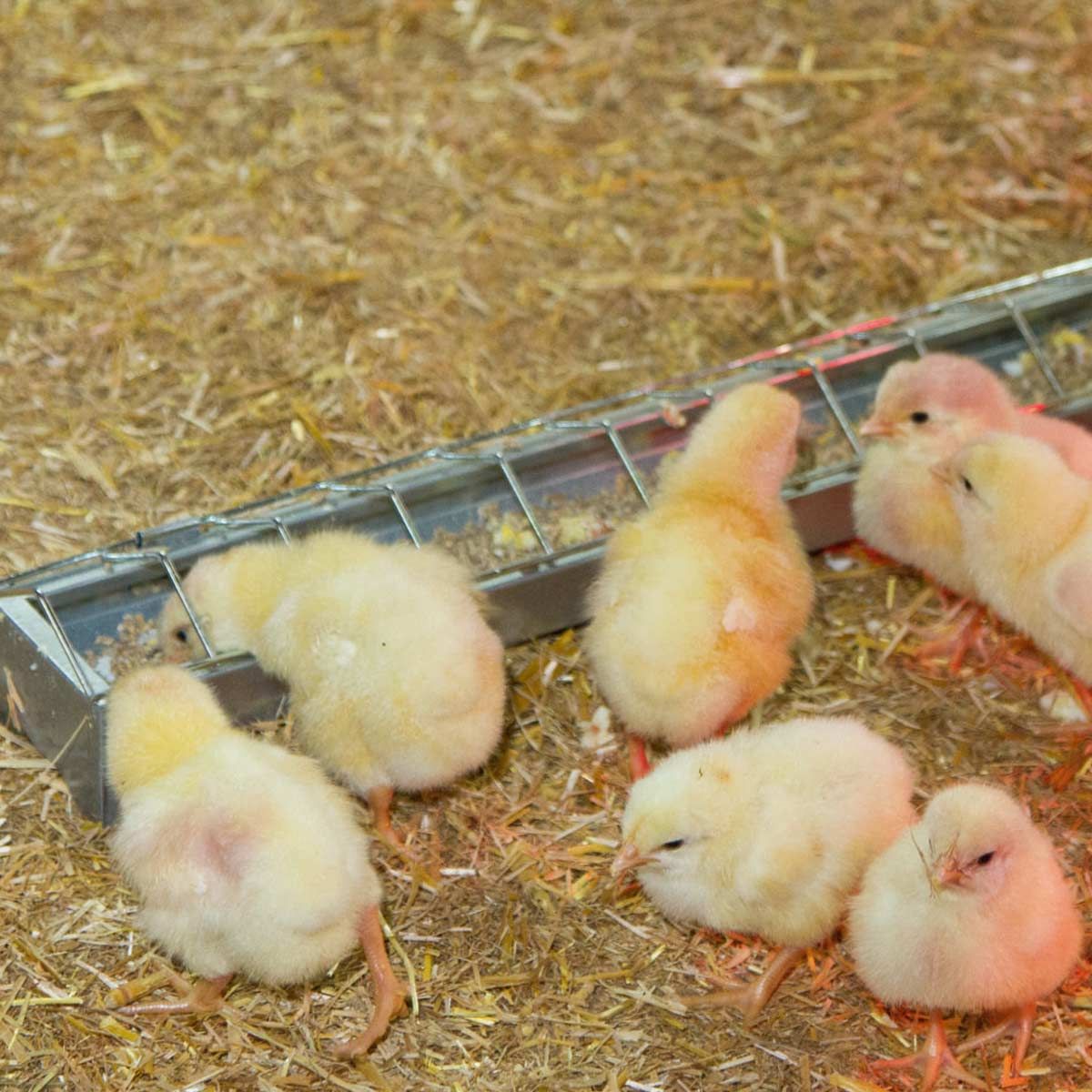 Detta fodertråg för kycklingar får inte saknas i något hönshus.