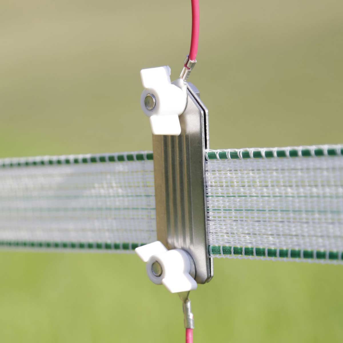 Kabeln för stängselanslutning förbinder elstängselaggregatet med elstängselkabeln. Kabeln är skruvbar och lämpar sig för band upp till 40 mm . Den mekaniskt och elektriskt perfekta anslutningen från elstängselanordningen till bandet.