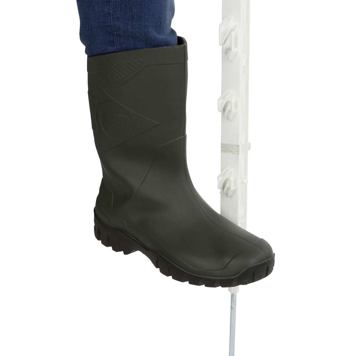 För säker ingång är plaststolpen utrustad med ett brett enkelt steg. Dessutom ger en 18 cm lång galvaniserad spik i marken extra stabilitet.