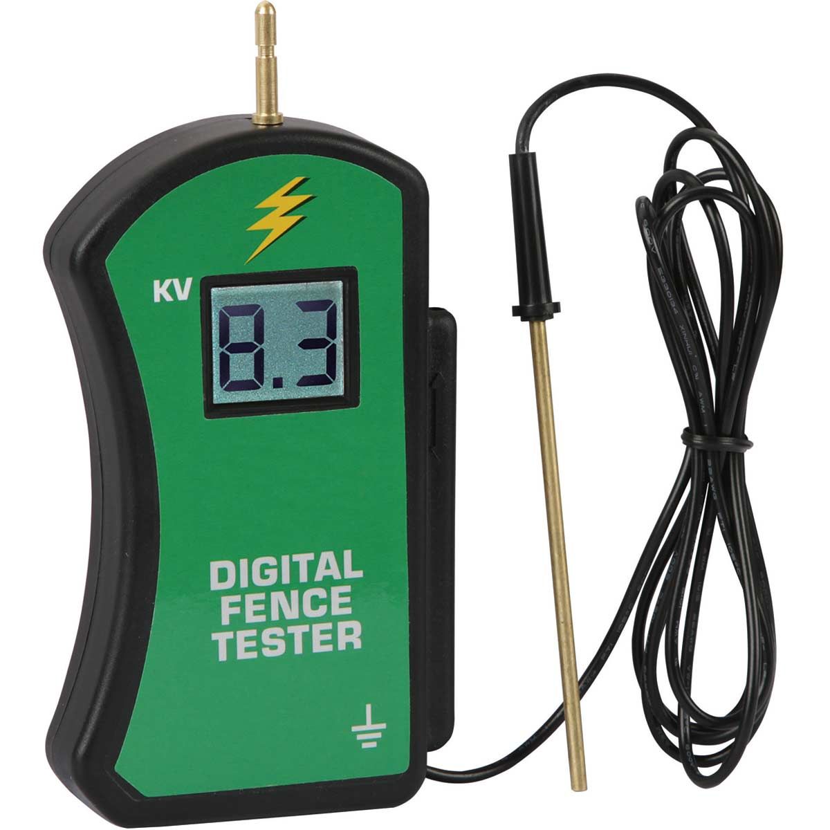 . Denna testare med digital display av märket Kerbl är idealisk för steglös mätning av spänningen på elstängslet. Fence Tester har ett mätområde på 0-9900 volt. Med stängselprovaren kan man enkelt mäta elstängslets utgångsspänning och jordning. Den digitala voltmätaren ligger bra i handen tack vare sin ergonomiska form och är bekväm och säker att använda och är i allmänhet oumbärlig för att kontrollera ett stängsel på en betesmark. Hållaren för mässingsstången, inskjutningarna för en tät lindning av kabeln och bältesväskan gör den digitala voltmätaren mycket lätt att transportera och stuva undan.