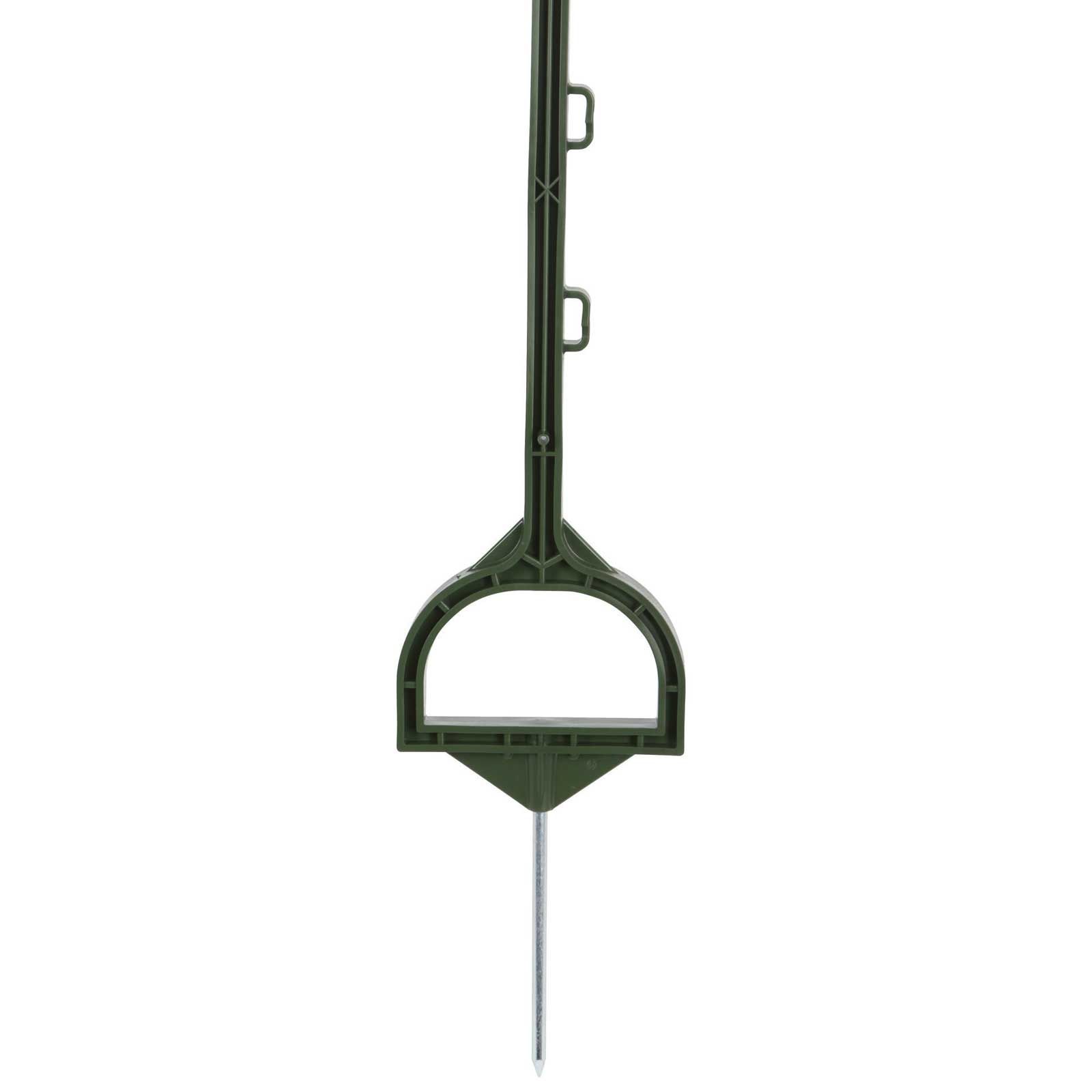 Särskilt på plastpålar är stigbygeln för optimal ingång direkt ovanför den galvaniserade markspiken med 19 cm längd. Skyddet mot vridning förhindrar att stakarna vrids och ökar på så sätt säkerheten och stabiliteten hos betesstängslen .