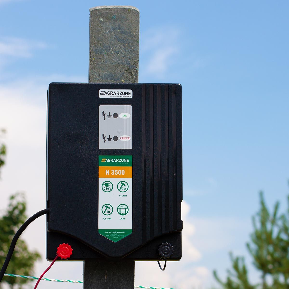 Men inte bara den extremt enkla driften, utan även en kombinerad optisk stängselspänning och markkontroll via LED-display,gör den strömdrivna elstängselanordningen Agrarzone N 3500 till en toppartikel inom tekniken för betesstängsel och idealisk för alla betesstängsel.