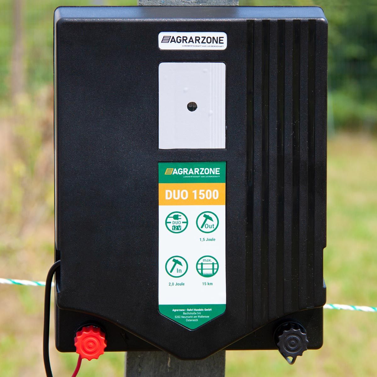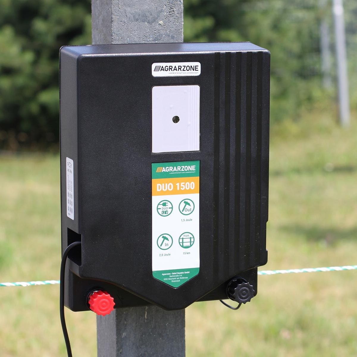 Den universella 230/12 volts-enheten Agrarzone DUO 1500 är den perfekta elstängselanordningen för korta stängsel utan växtlighet!