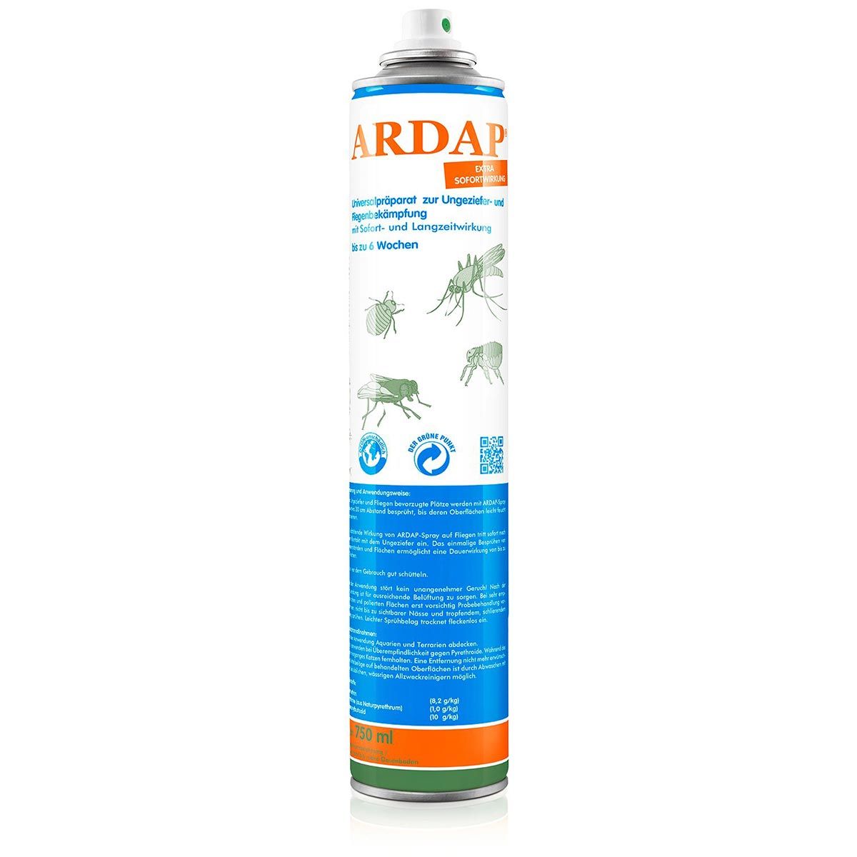 - Ardap Spray är ett praktiskt universalpreparat för bekämpning av alla typer av skadedjur och insekter med omedelbar och långsiktig effekt i upp till sex veckor - ett effektivt medel för hemmet.