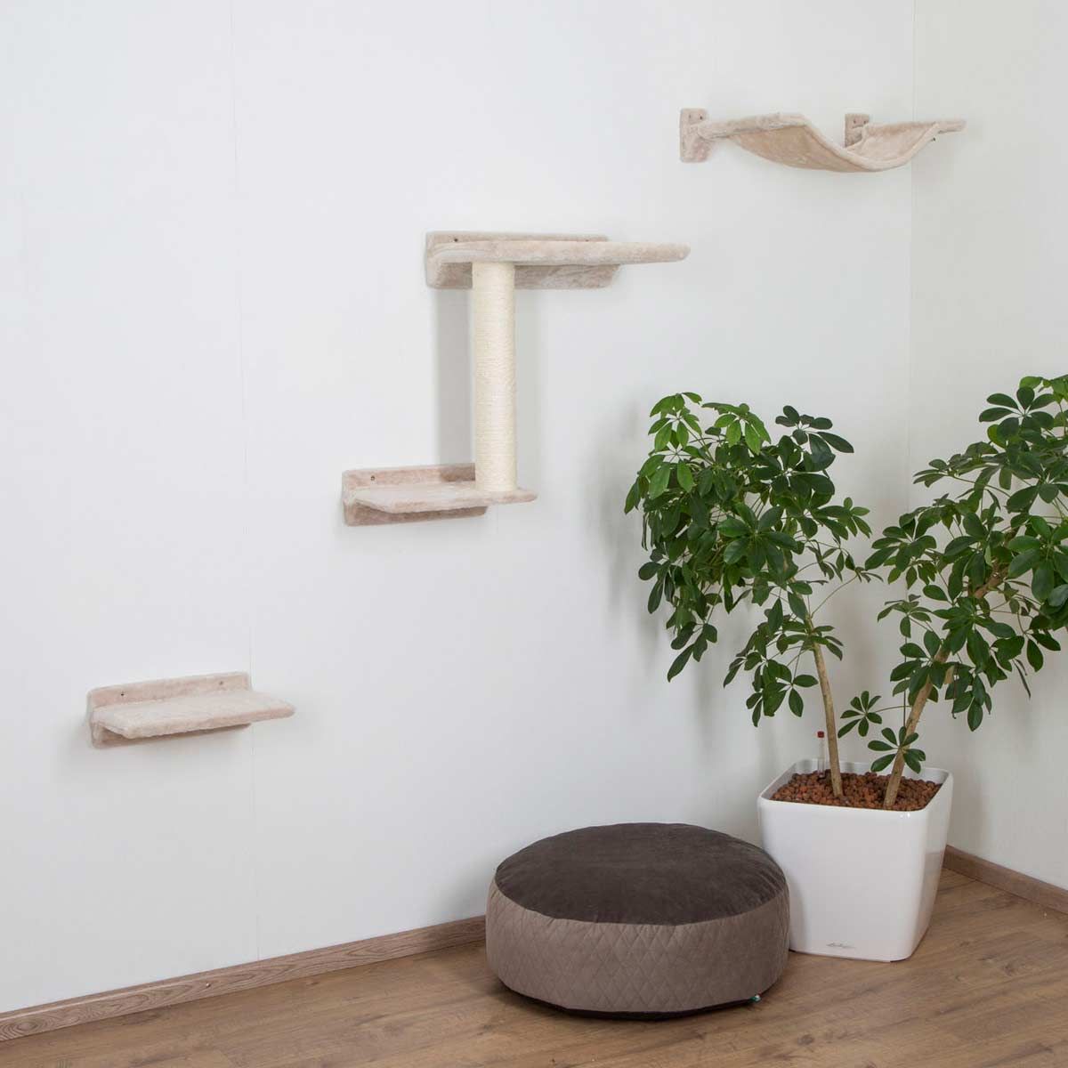 Den flerdelade klätterväggen Zugspitze erbjuder katter tillräckligt med utrymme för att leka även i trånga lägenheter. Med flexible väggmontering blir man rättvis för varje katt och erbjuder fyrfotadjuren ett klätterparadis i de egna 4 väggarna. Kattklätterväggen levereras komplett med det nödvändiga väggmonteringsmaterialet och monteringsanvisningar.